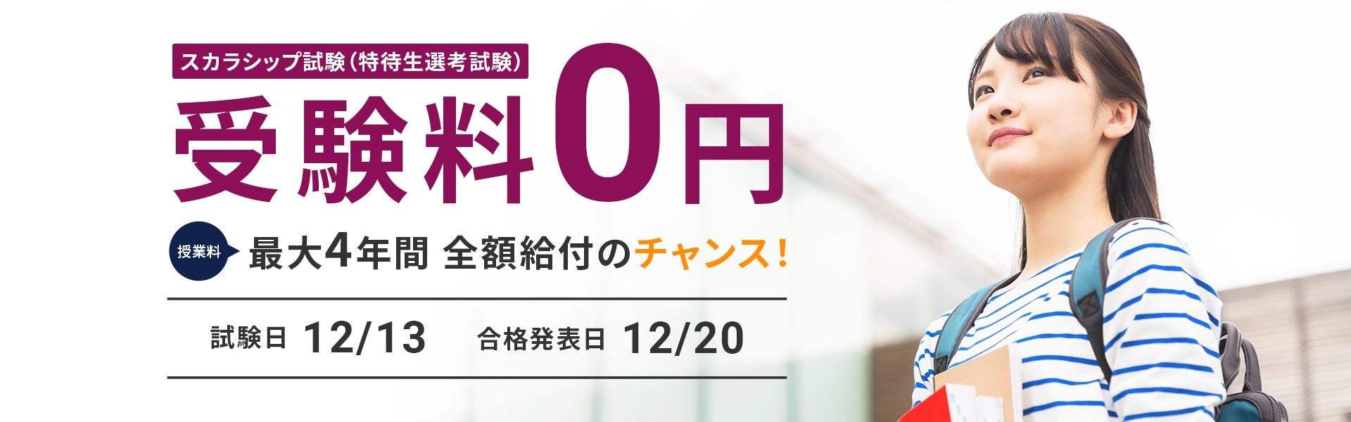11/26(水)より出願開始|スカラシップ試験(特待生入試)・学校推薦型(公募制) など 【12/4 書類必着】