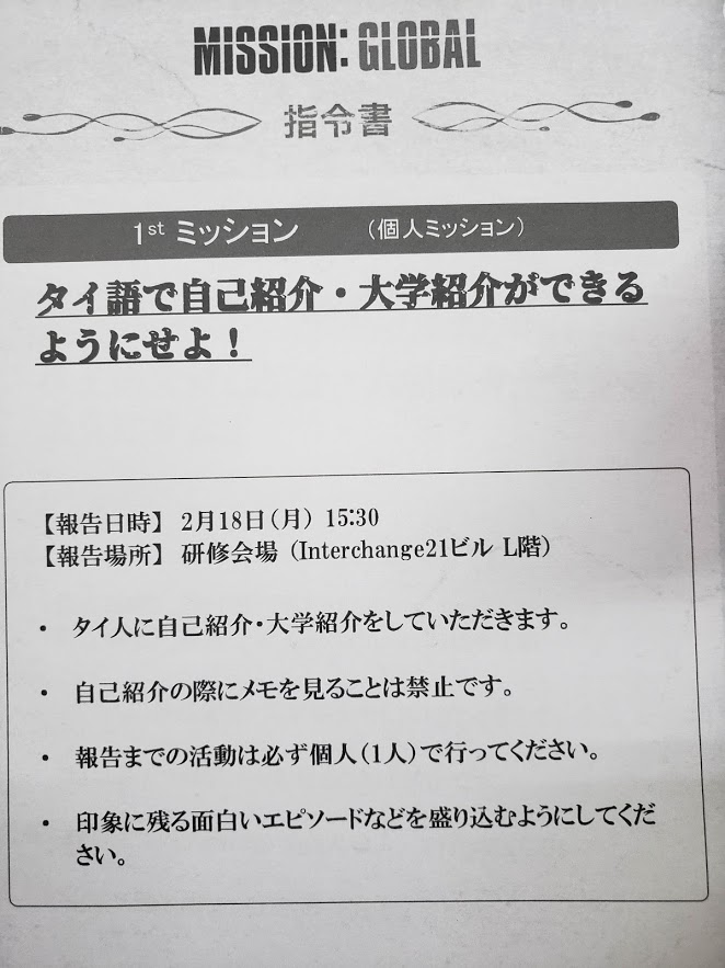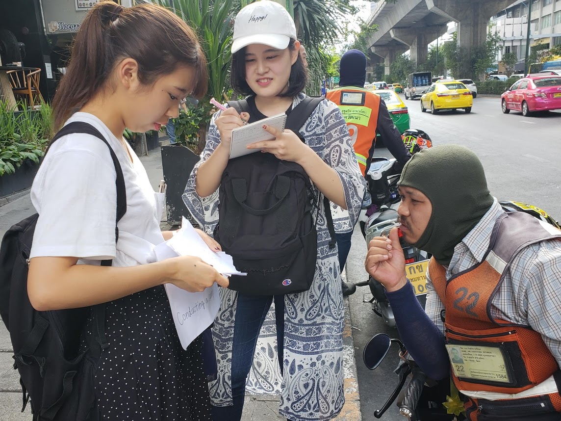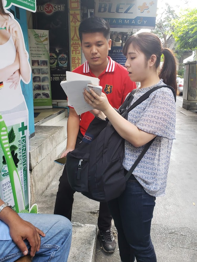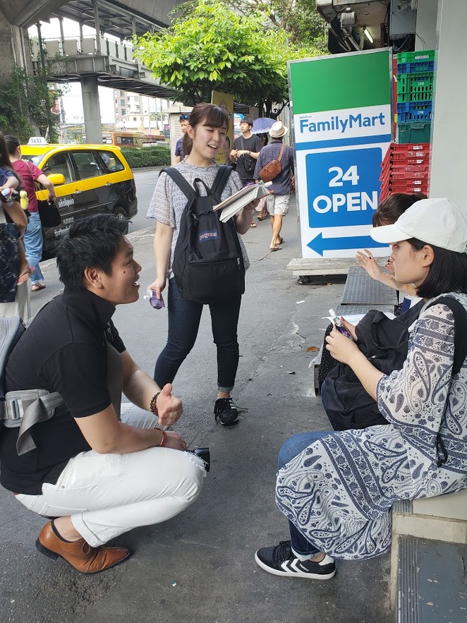 ここバンコクは、観光大国で、世界中から旅行客が集まります。バンコクには多くの日系企業があり、その中の企業様より、ビジネスミッションを頂き、解決をするという非常にハードな研修です。日本語、英語、タイ語すべてを使い、ビジネスミッションをいかにクリアするか。ということがゴールになります。
