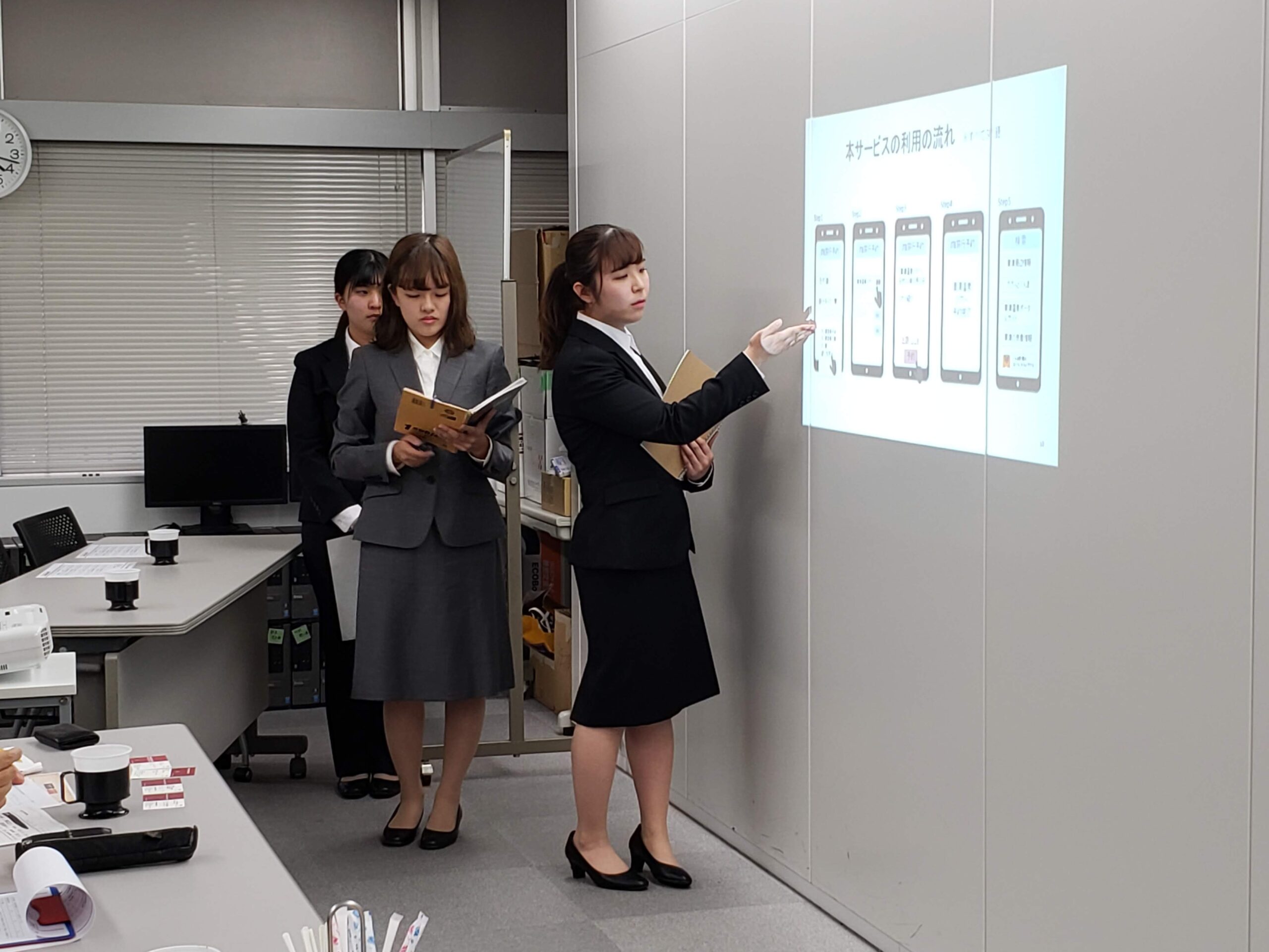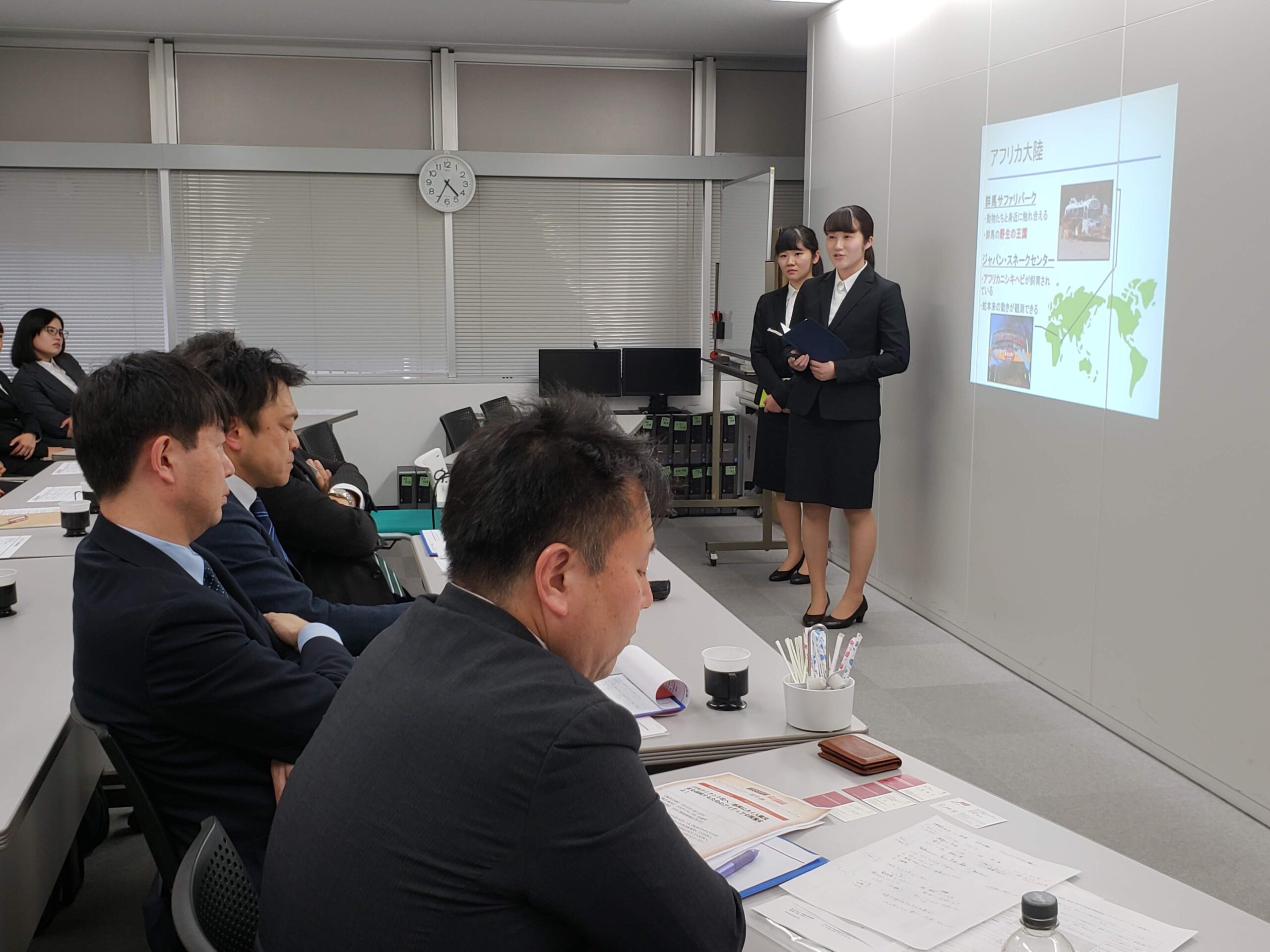 学生は、緊張しながらも時間内に調査を終え、企業様の前でプレゼンテーションを行う姿は、非常に立派です。