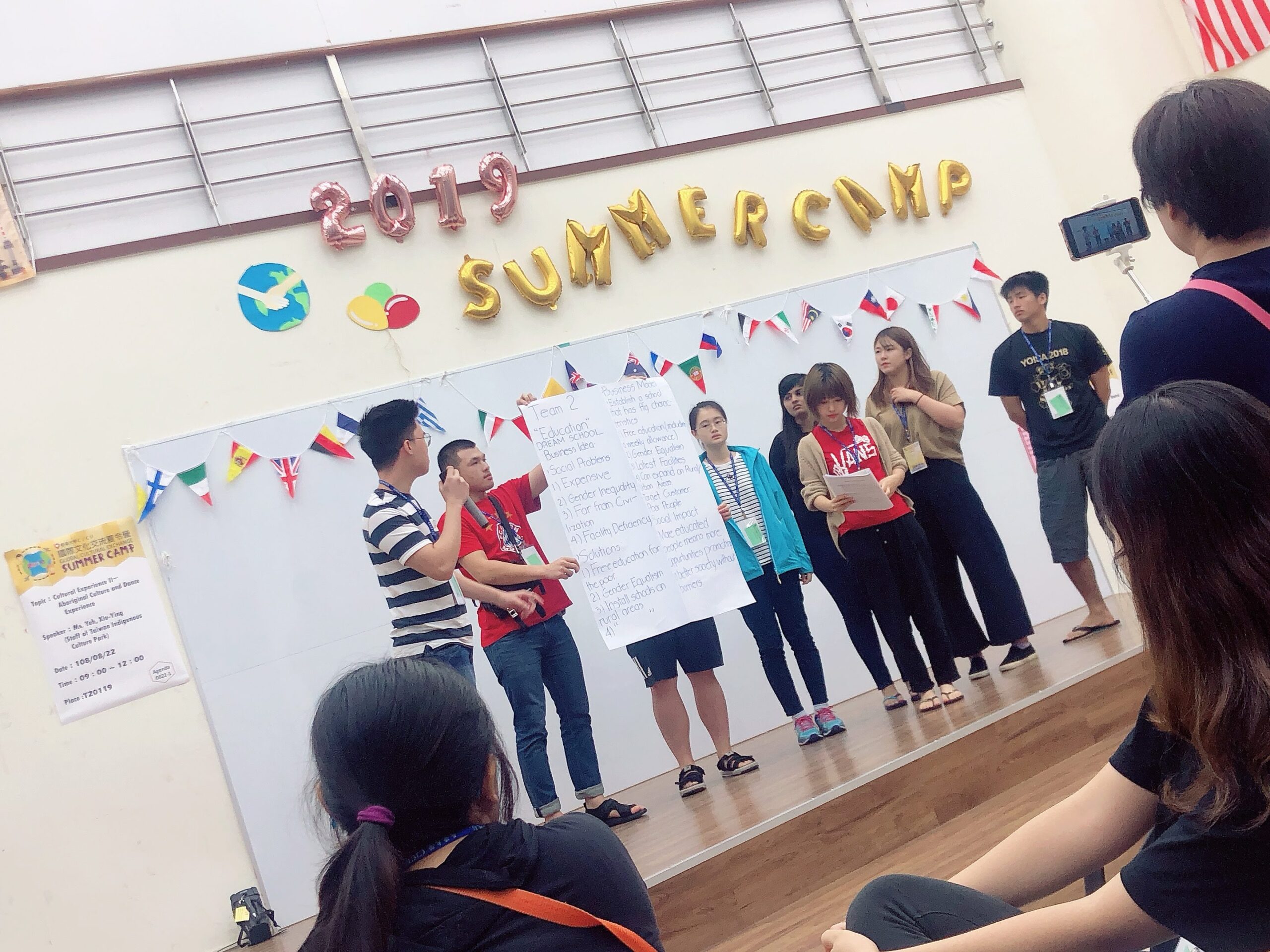 最終日に発表する活動を行いました。例えば、歌とダンスがお題のチームは、