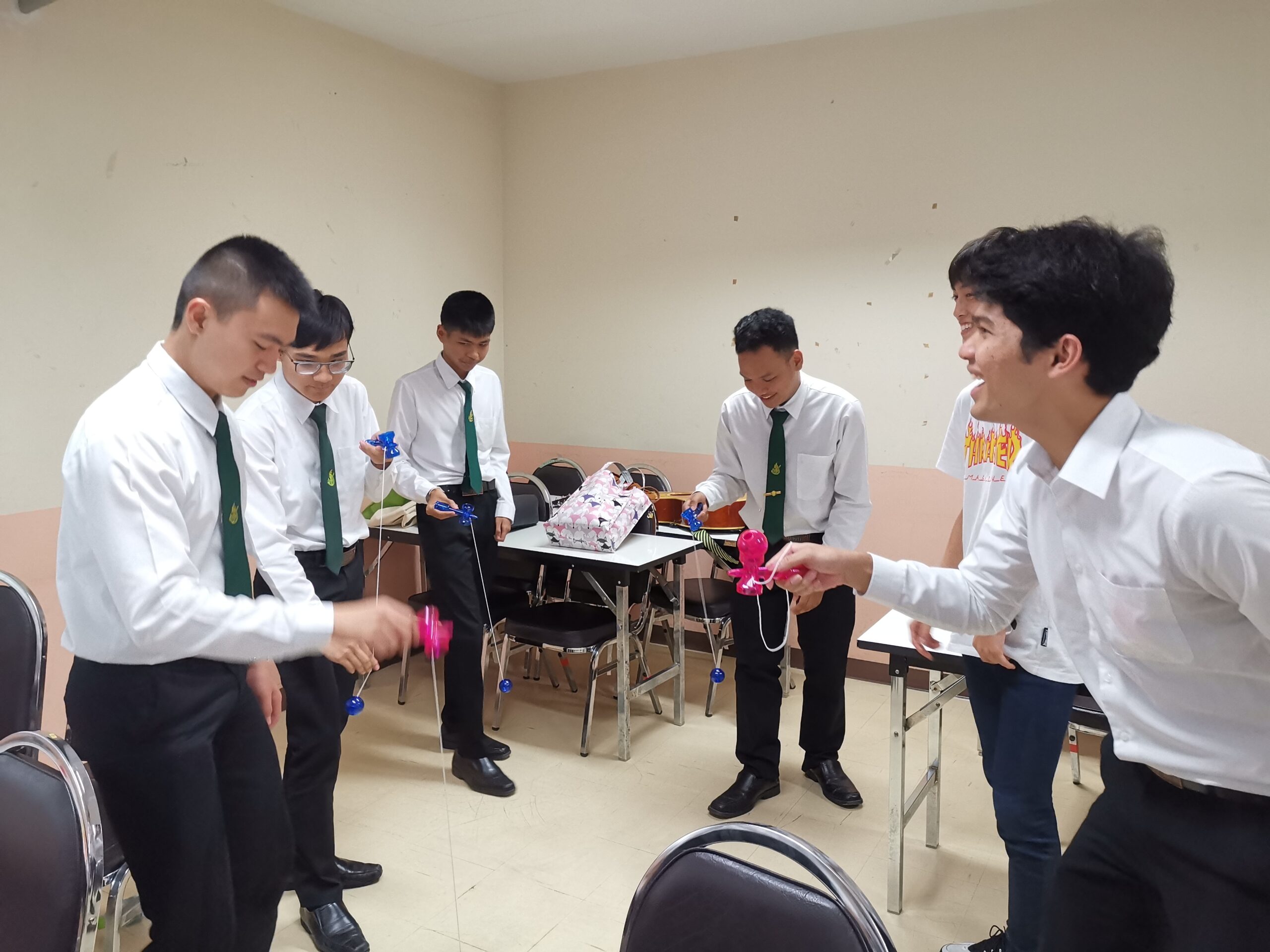 同年代ということもあり英語やボディランゲージを用いて、