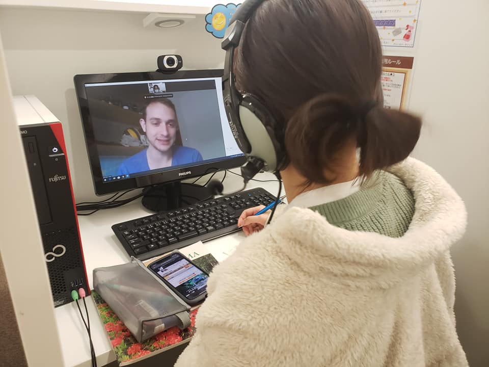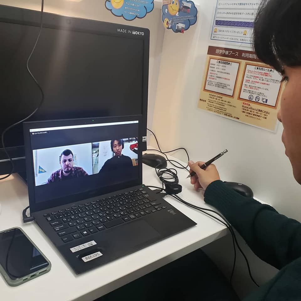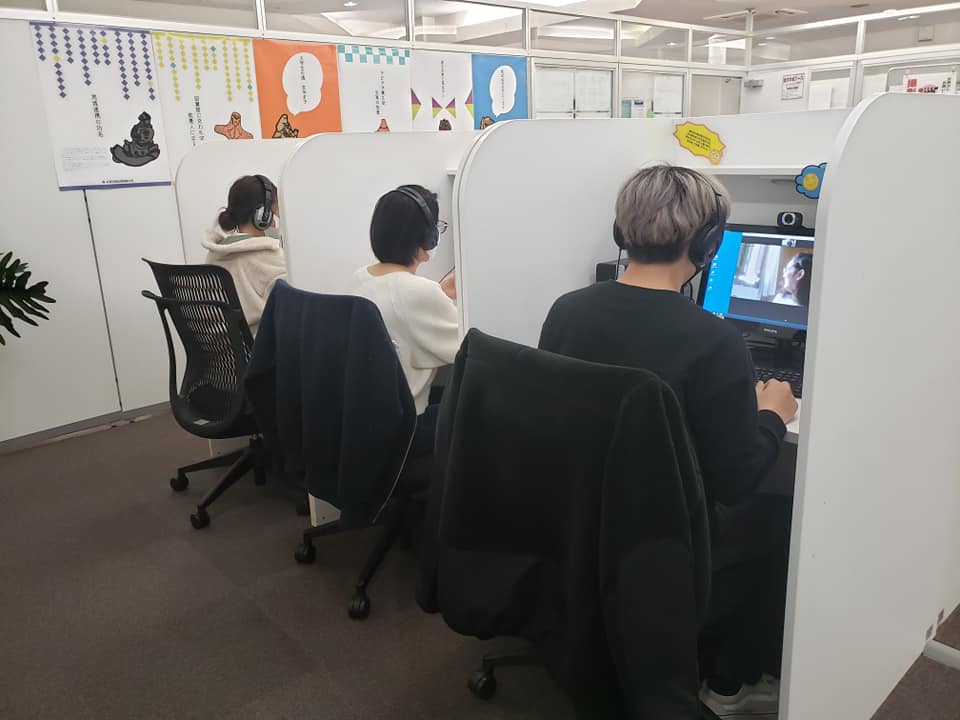 オンライン交流時の語学学修ブースは、楽しそうな学生たちの声が響き、活気にあふれています。