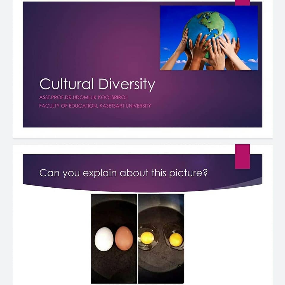 今回のセッションでは、Stereotype / Diversity / Dimension of cultures / Communication skills of teachers / ICCのトピックについて話しあい、お互いの国について意見を出し合いました。ステレオタイプでは、「タイは象に乗って町中を移動してると思われてる」「タイ人はルーズだと思われてる」など、驚きのタイ学生の意見も聞くことができました。また、Race(人種)やReligious(宗教)、ロヒンギャ、キリングフィールドなどについても、「貴方が教育者なら?」という角度から考え、深い話し合いが行えました。