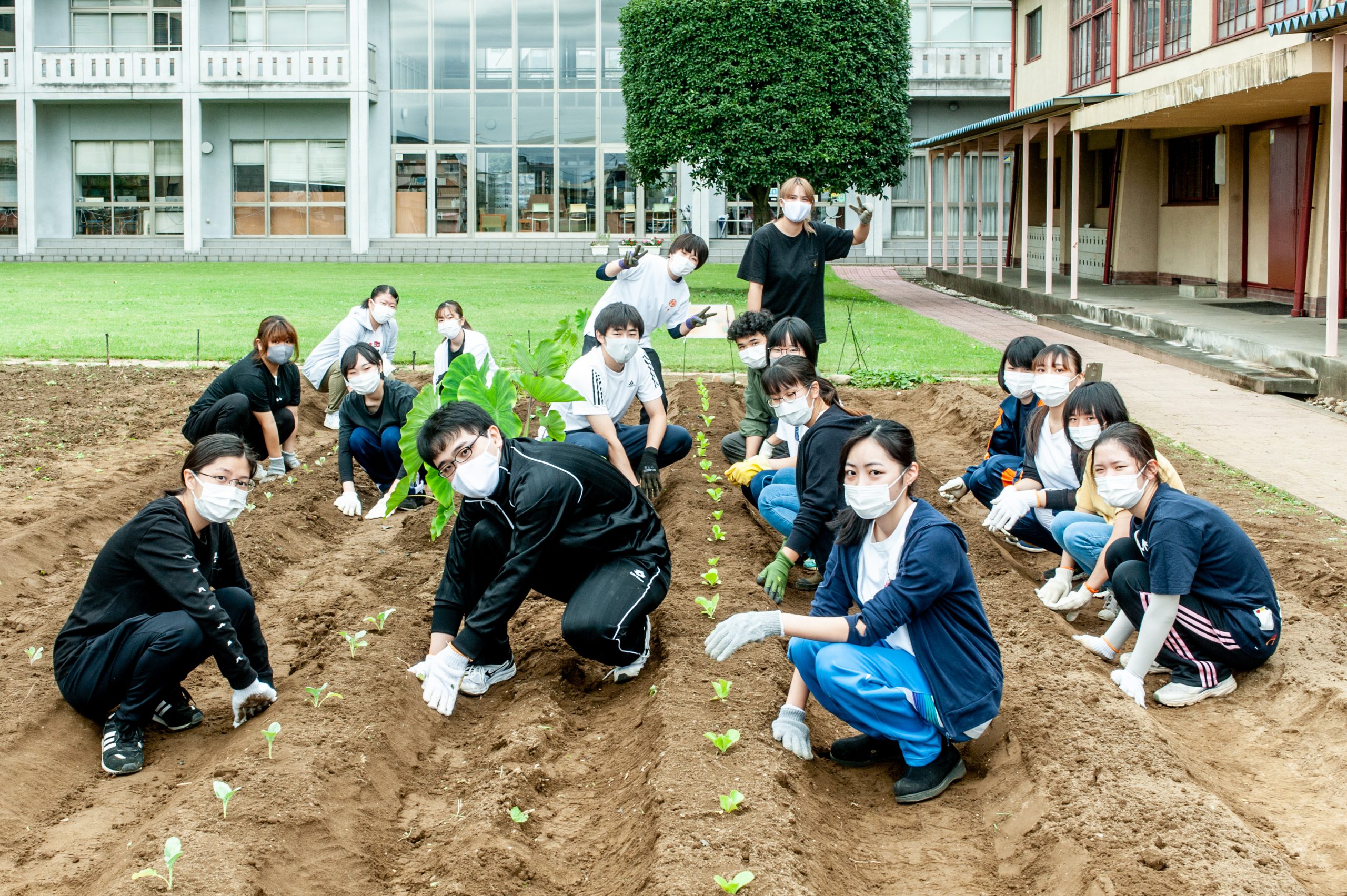 今年度は、共愛学園短期大学農園でも野菜の育成を開始しました。短大の教職員、また学生の協力のもと始まりましたが、短大の新しい土での野菜の育成には学生たちが苦労していた様子でした。野菜を育てることの難しさを改めて実感した1年となりました。