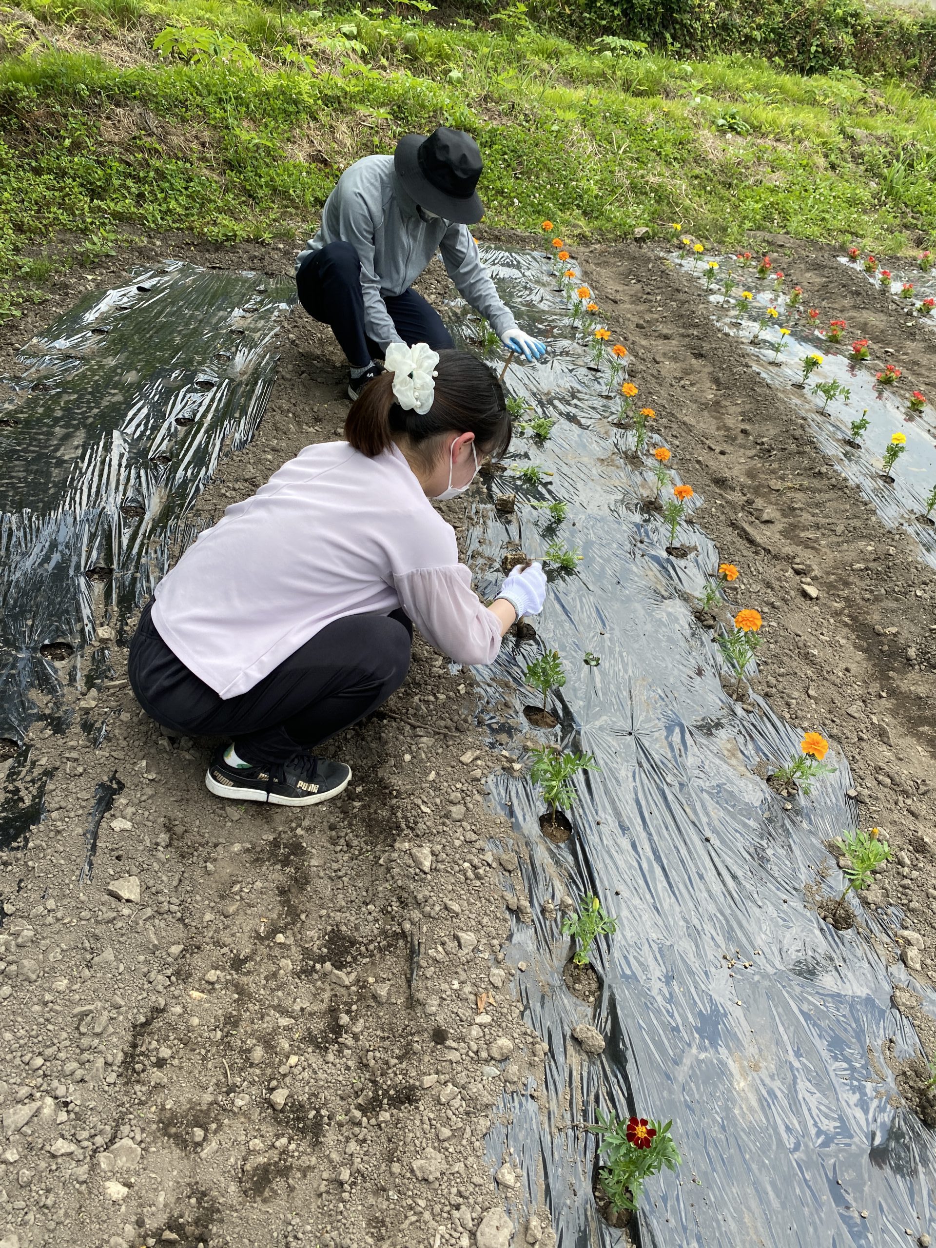 ・花植え(2ヶ所の畑にマリーゴールドやベコニアなどを植える)