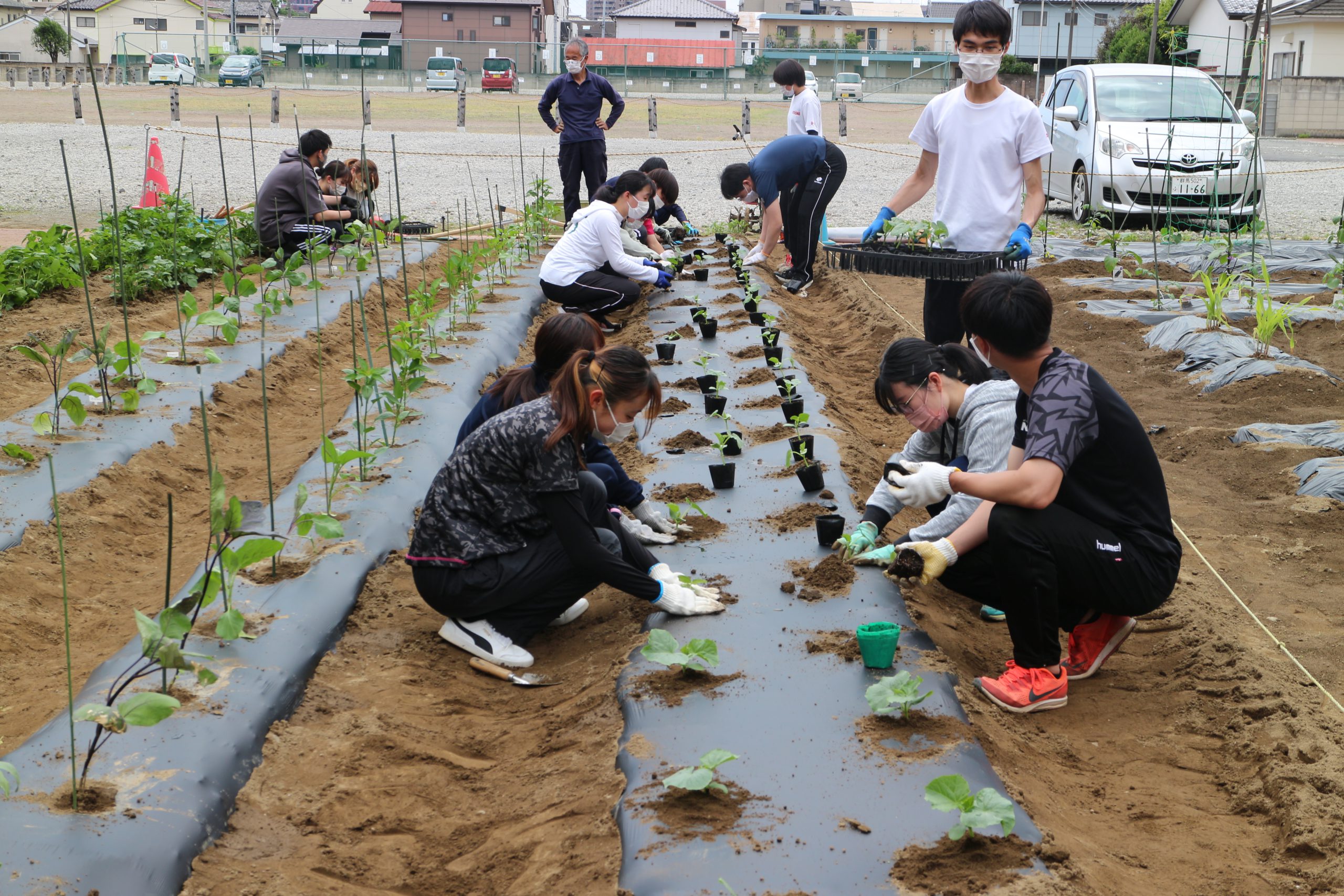 - 野菜のたね、苗植え作業(短大農園)