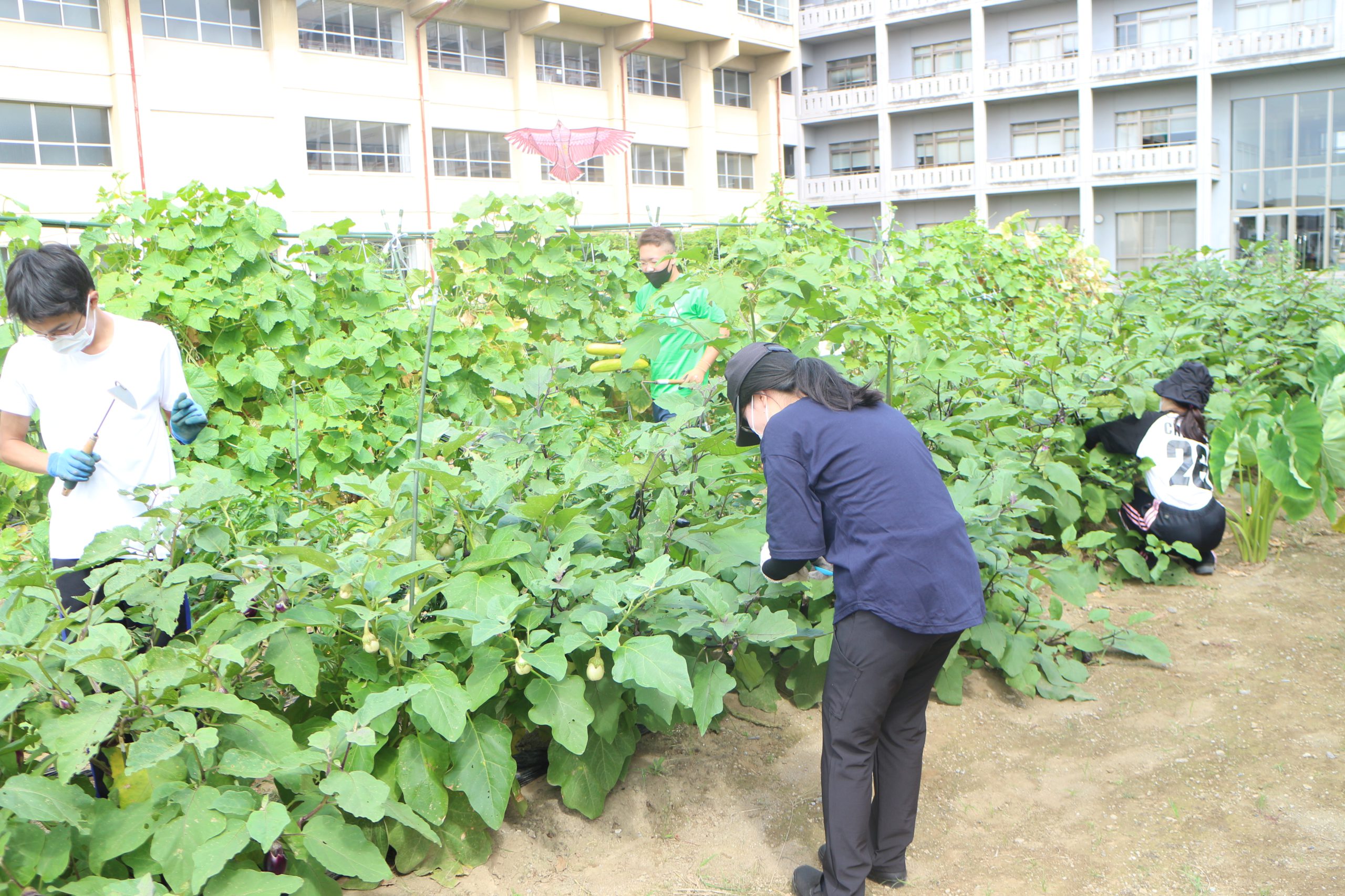 - 夏野菜の収穫(短大農園)