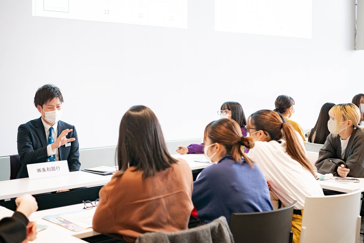 お招きした企業の中には本学OB・OGの姿もあり、身近な存在の先輩からも話を聞くことができて、熱心に話に耳を傾けている姿が見られました。仕事や就職活動についての理解もより深まったようです。