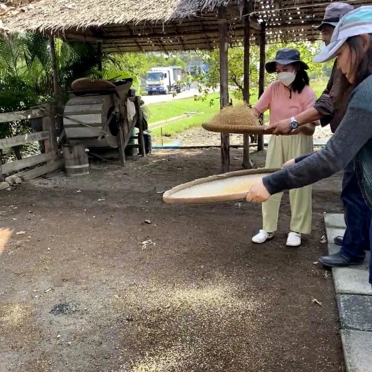留学センターでは、留学生が交流できるイベントが、定期的に開催されています。この回では、ライススクールというイベントでお米が育つ過程を実際に体験しました。まさかタイで田植えをするとは思いませんでしたが、あまりお米に馴染みのないヨーロッパからの学生は、お米が作られる過程を知るのは、初体験であったようで、このイベントを通して、各国の食文化についていろいろと語るきっかけとなり、良い体験となりました。