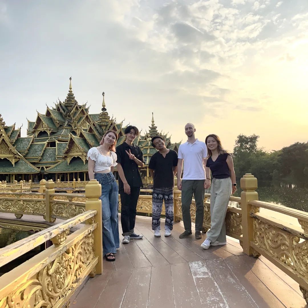 平日は、授業の準備に追われて、毎日忙しい日々を送っていますが、休日は、同じ国際寮に住む友人や、現地の友人と観光をしています。写真は、8枚目から順に、寝ている大仏が有名なWat Phoでおみくじを引いているところ。続いて、タイの観光名所が、再現されたテーマパークSamut Prakan ancient city、タイのローカルな生活を覗くことができるKo Kretという場所を訪れた際の写真です。