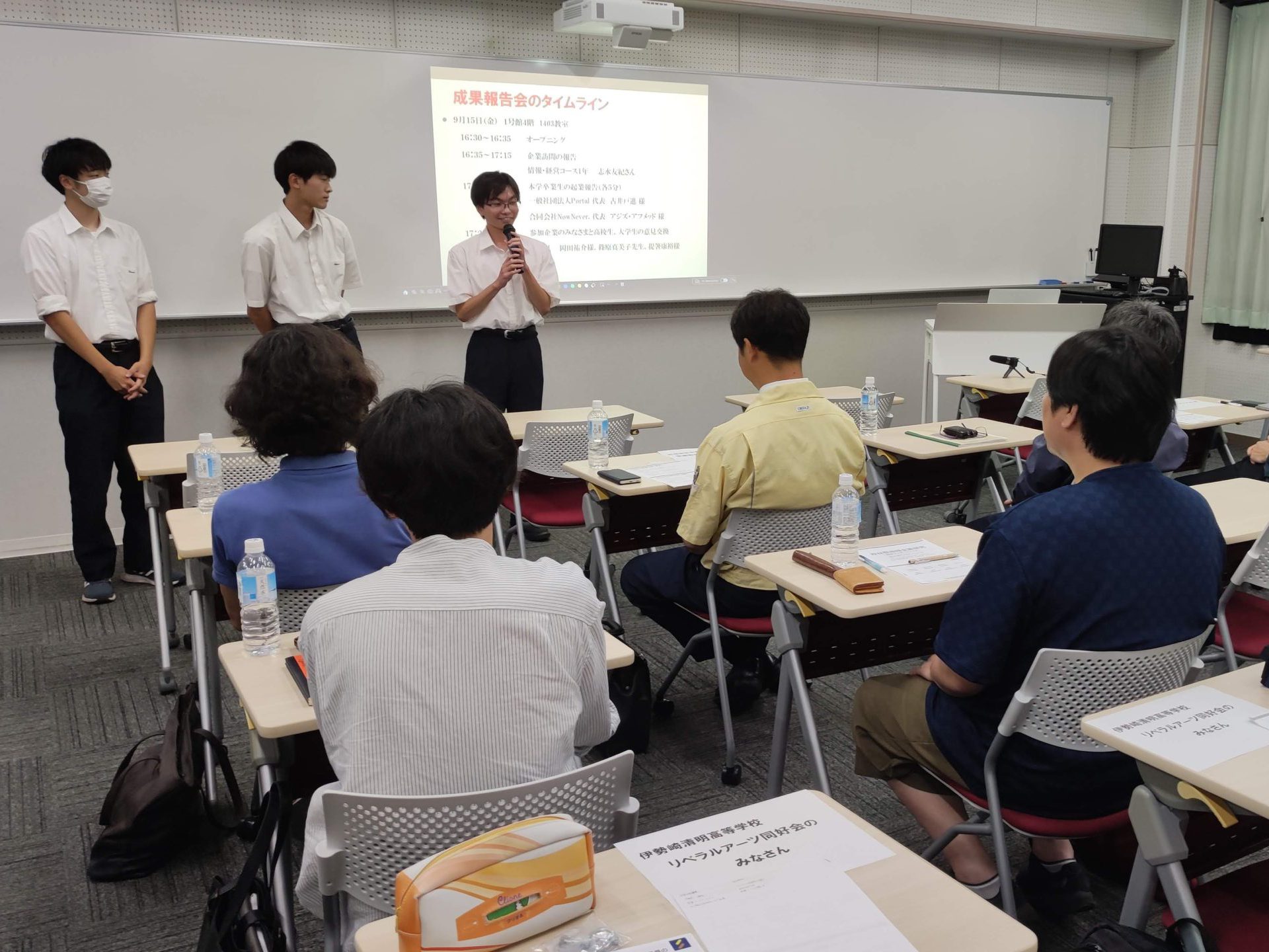9月15日の成果報告会には群馬県立伊勢崎清明高等学校「リベラルアーツ同好会」の皆さま、本学卒業生で起業されている一般社団法人Portal 代表 古井戸進 様、合同会社NowNever. 代表 アジズ・アフメッド 様にもご参加いただき、活発な意見交換もなされました。
