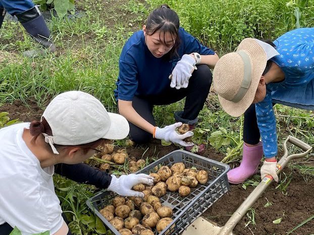 - 短大生とジャガイモ収穫(短大農園)