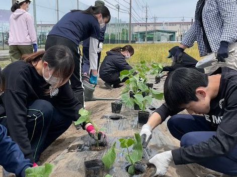 - 皆で夏野菜の植え付け(大学農園)