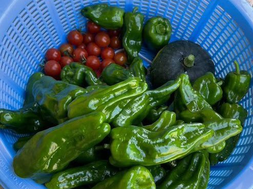 - 収穫した夏野菜(短大農園)
