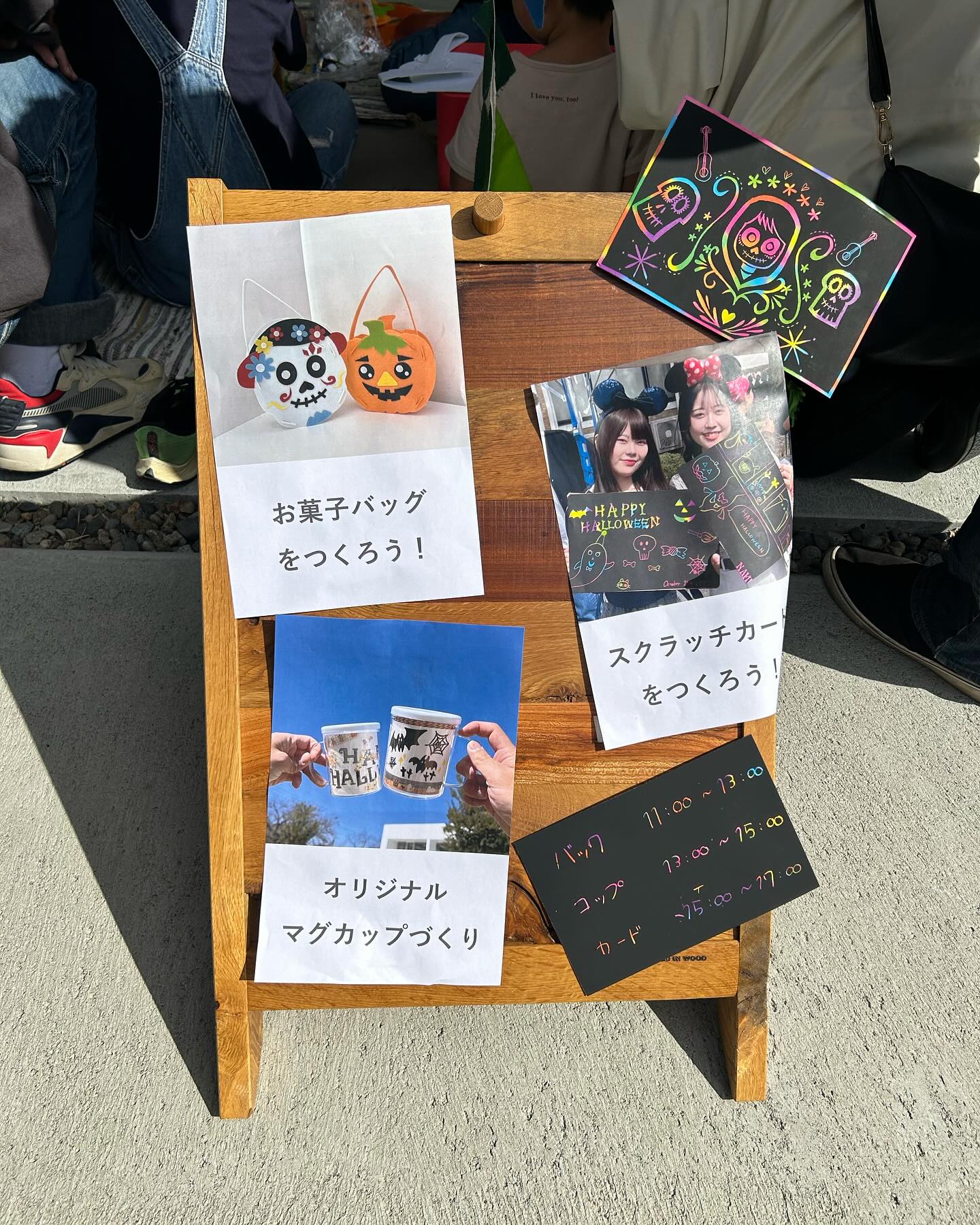 大学からは、DRINK ENGLISH という英語で活動を行う団体の学生,オナーズ学生と心理コースの学生たちが英語でワークショップを行い、ハロウィンにちなんだポストカード、オリジナルマグカップ、お菓子バッグを作りました。