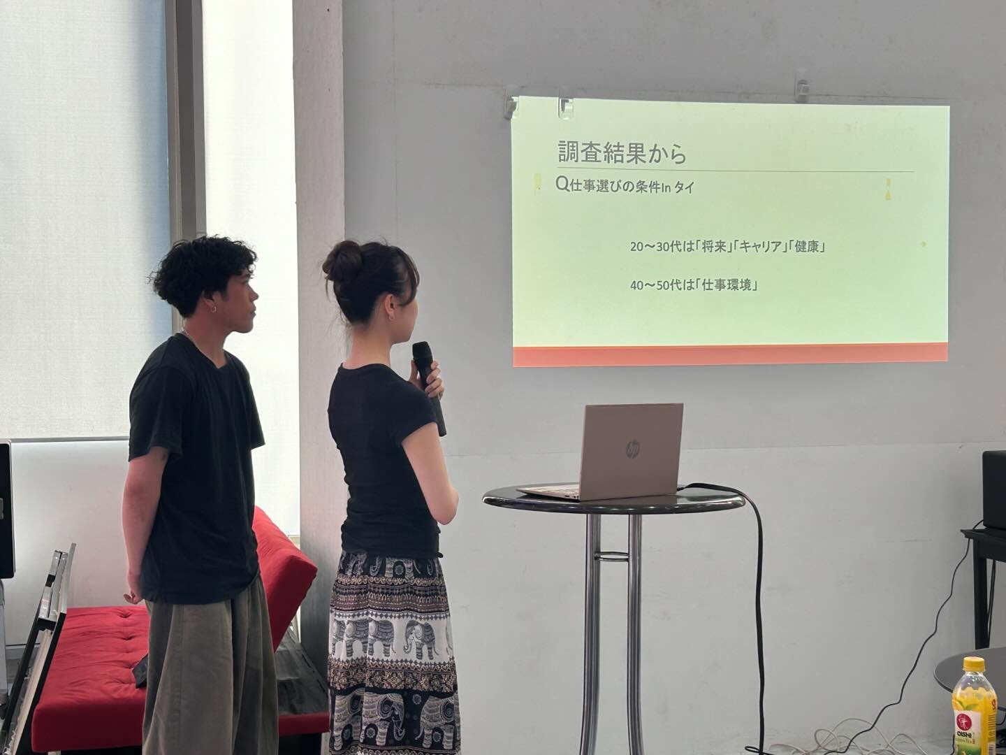 今日のミッションは、チームで行いました。💨タイ人の就職の意識調査でした。学生たちは、実際にタイのみなさんにアンケートを取り、現地の方の生の意見を聞き、ミッションを頂いた企業さんにプレゼンを行いました。💻