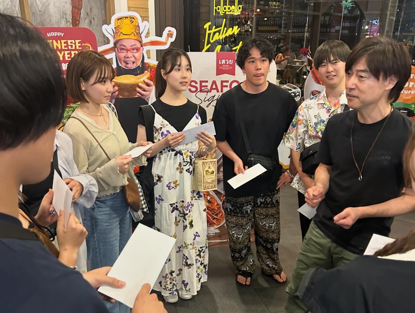 みんなで美味しいタイ料理を頂き終わった後に、早速ミッションが出されました!これからホテルに帰り、部屋に戻ってから頂いた封筒を開封して、ミッションの内容を確認します。