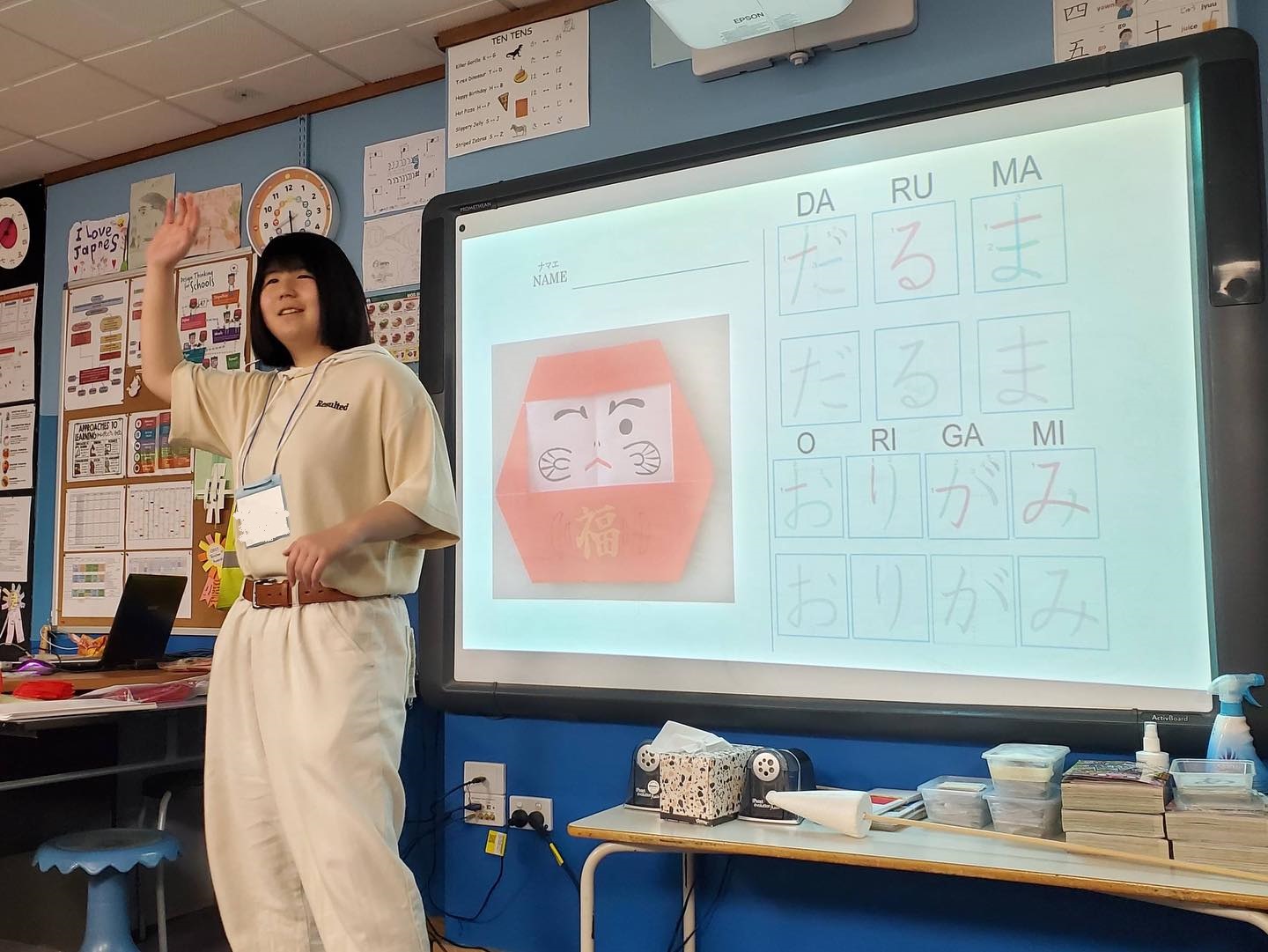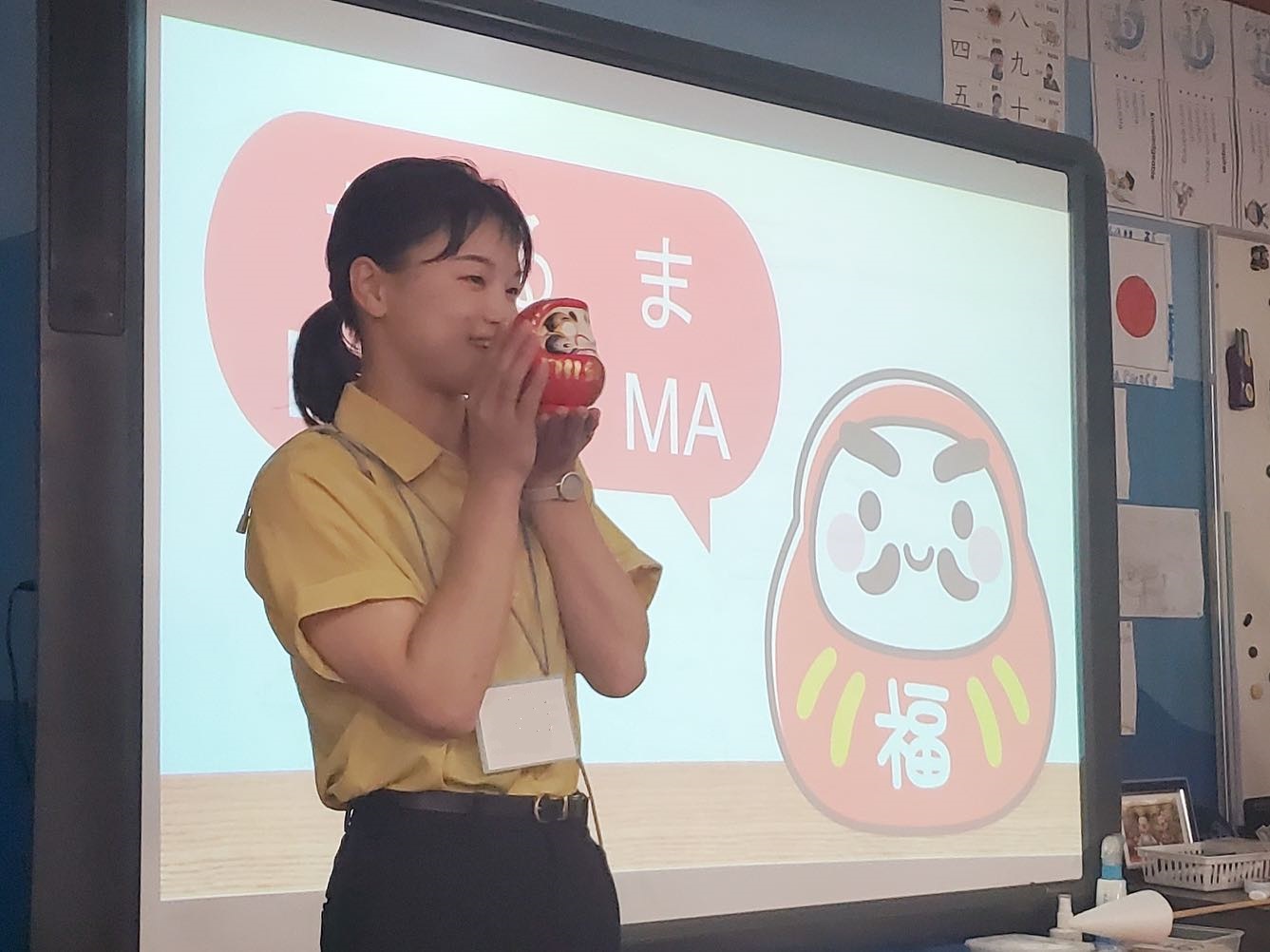 月曜日に現地の日本人の先生による「Japanese」の授業を見学し、火曜日から「だるま」を教材とした授業と、多義語の「大丈夫」を教える授業を行いました。