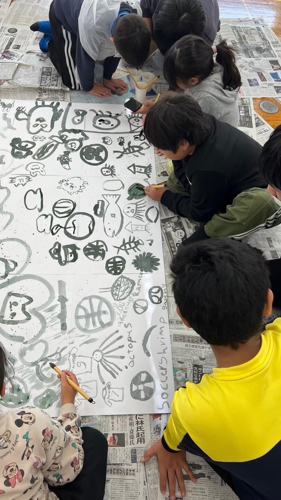 また、伊勢崎会場では 12 月に書道体験会を実施しました。外国籍の児童たちの中には習字そのものが初めての子が多くいたり、正座に苦戦する子もいましたが、筆で絵を描いたりして楽しく日本文化に親しんでくれました。