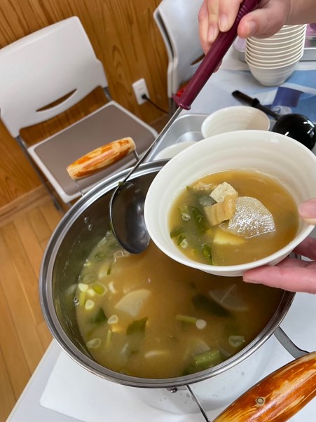 昨年度に今後の展望として掲げていた「地域との交流」は、共愛学園小学校アフタースクールとの交流にて果たすことができました。前期では子供たちとカレーライスを、後期では大学農園で収穫したさつまいもを使って味噌汁を作りました。前期のカレーライス作りの際は、野菜の切り方に苦戦していた児童もいましたが、後期になると野菜の切り方が上達していたりと、児童の成長を肌で感じることができて良かったです。