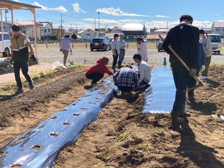 2023年度の「共愛ファーム」は学生24名で4月よりスタートしました。大学農園、共愛学園短期大学農園の2ヶ所の畑にて活動をしており、今年度は前年度に引き続き、数名の短大生が短期大学農園での活動に参加してくれています。また、新型コロナウイルスの規制緩和により留学生の受け入れが再開され、3名の留学生も共に活動を行なっています。