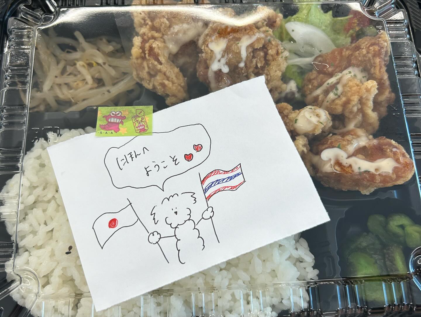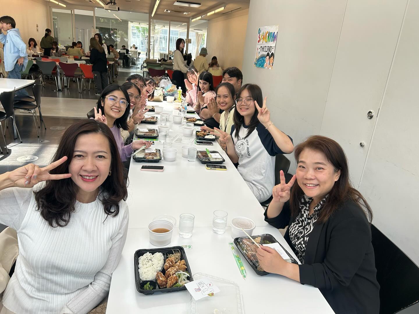 ランチには、美味しい学食をみんなで食べました。タイの学生たちは初めての日本の大学の学食を楽しみにしてくれていました。学食のスタッフの方からのかわいいてがきメッセージに感激していました!