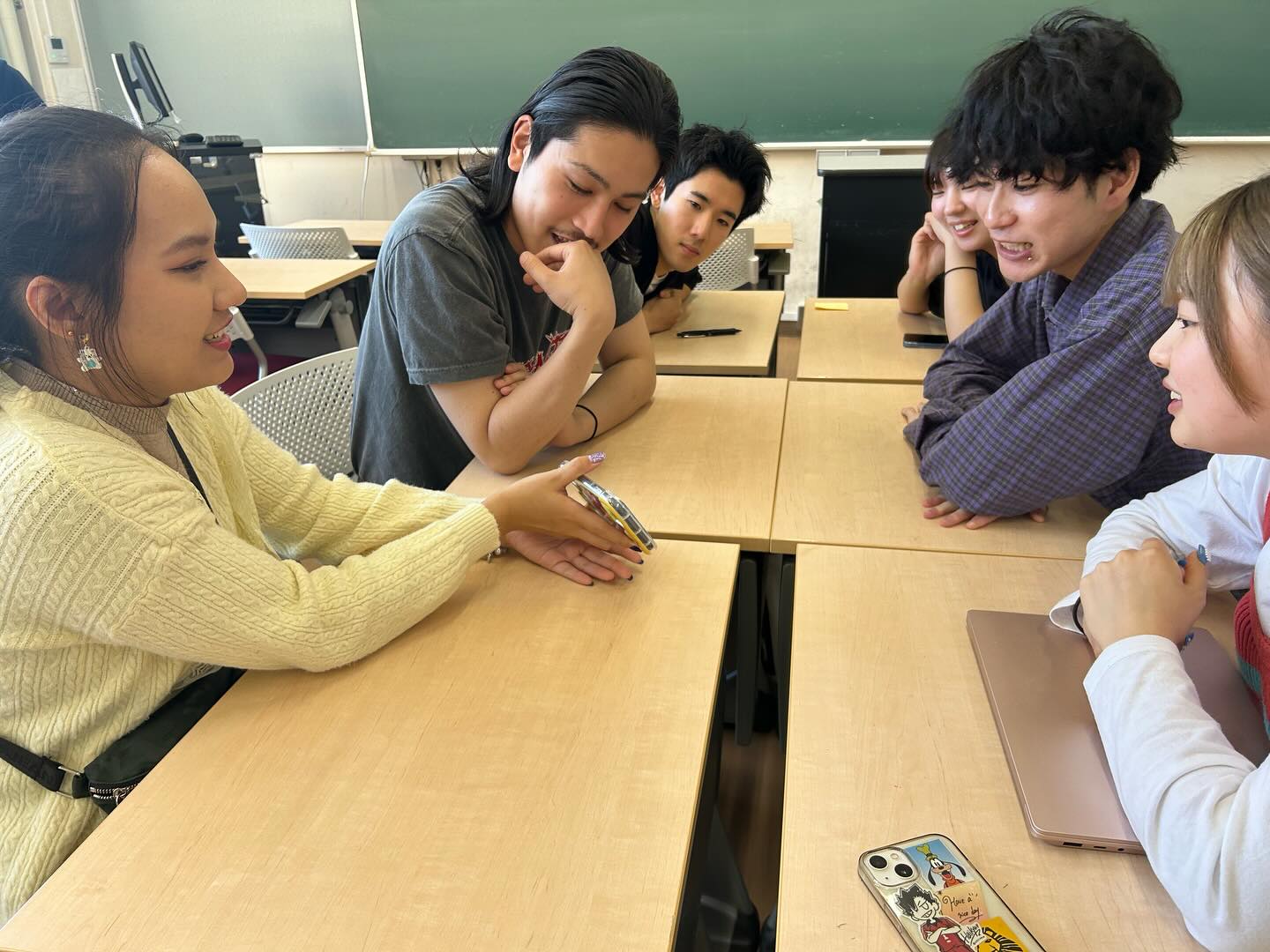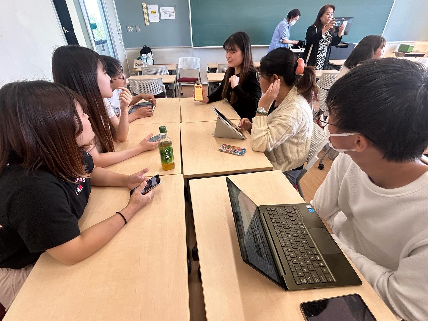 また、英語コミュニケーションコースの授業に参加し、「Tourism English」の授業では、日本、タイの観光地についてお互い紹介し、「Speaking of Japan」の授業では、日本の社会問題にフォーカスし、ヤングケアラー、教員の働き方や少子化についてなどを日本とタイの視点からディスカッションを行い、これらの問題を通してお互いの文化や考え方の違いも学修していました。