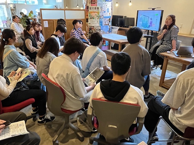 午後はグループ行動で市内の関心のある店舗や施設へ。「ふやふや堂」「MAYU」「一の湯」「にのさ」「ふふふ」「まちなかテレビ」にお邪魔しました。低速電動バスでスローな観光を支える方、家族で移住してカフェを開いた方、移住して事業を継承した方など、桐生を舞台に活躍している方の生の声は、学生たちにも大変刺激になったようで積極的に質問する姿が見られました。