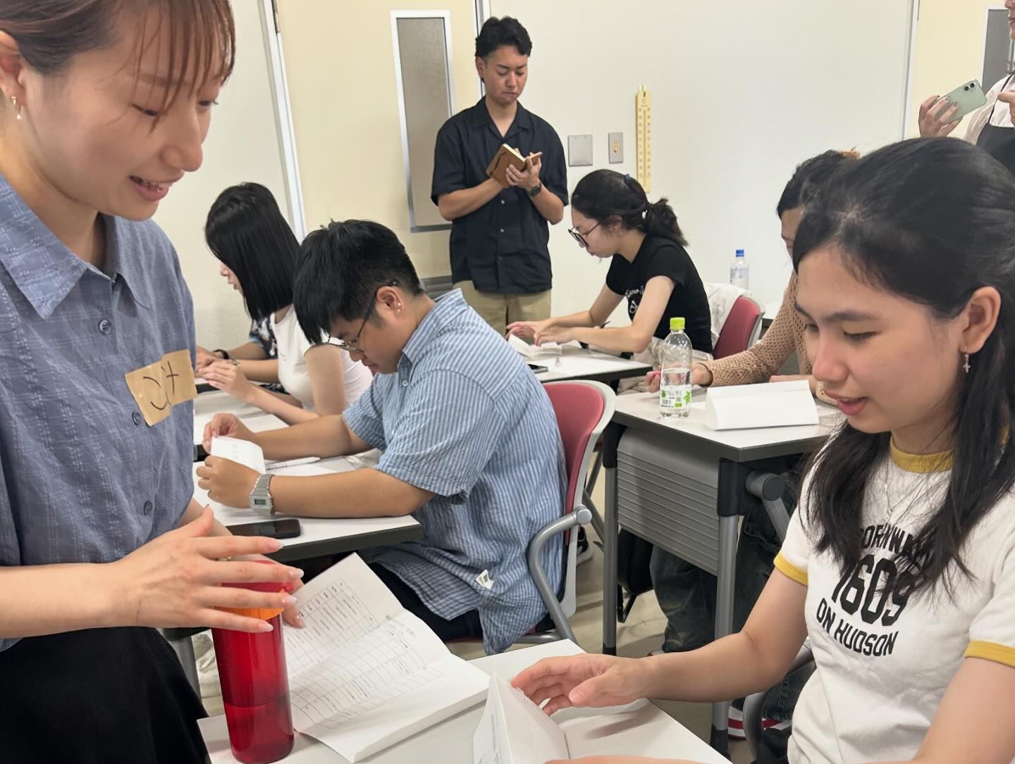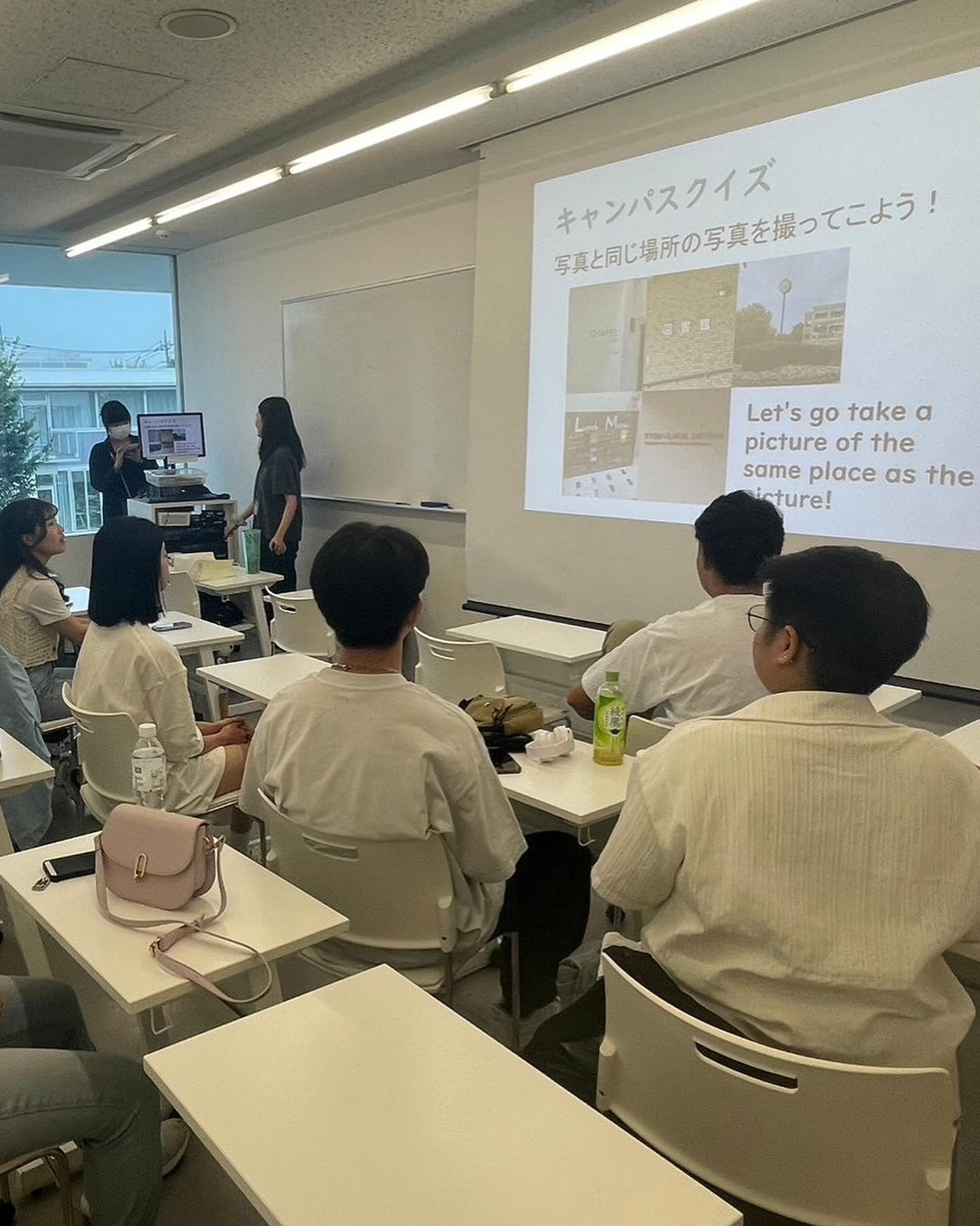 キャンパス内での学びでは、英語コミュニケーションコースの「Tourisum English」「Speaking of JAPAN」に参加し、プレゼンテーションやディスカッションを通じて、意見交換を行いました。また、「日本語教授法」の授業では、本学の学生が先生となって、台湾の学生さんに日本語を教えました。台湾のみなさんが全員日本語で、あいさつ、自己紹介、好きなものが言えるようになりました。このように学内で様々な授業に参加することにより、より多くの学生と交流することが出来ました。