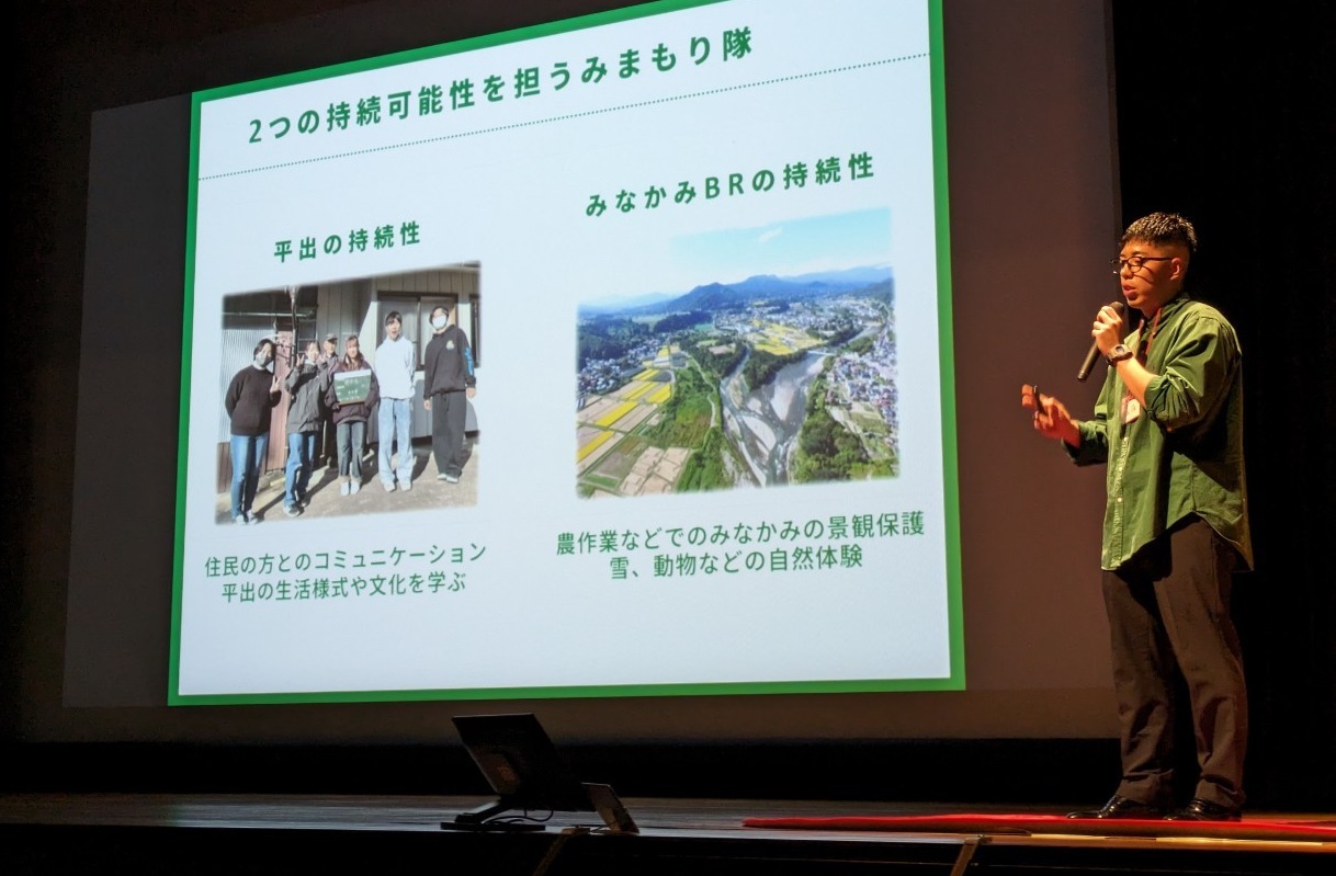 MED ぐんま 2024 では代表者 2 名が共愛 COCO の持続可能性と同町ユネスコエコパークの重要性について約 15 分間のプレゼンテーションを行いました。さらに、プレゼンテーションだけではなくブースにも出展し、共愛COCOの活動を発信するとともに、様々な活動をされている方とも交流することができました。