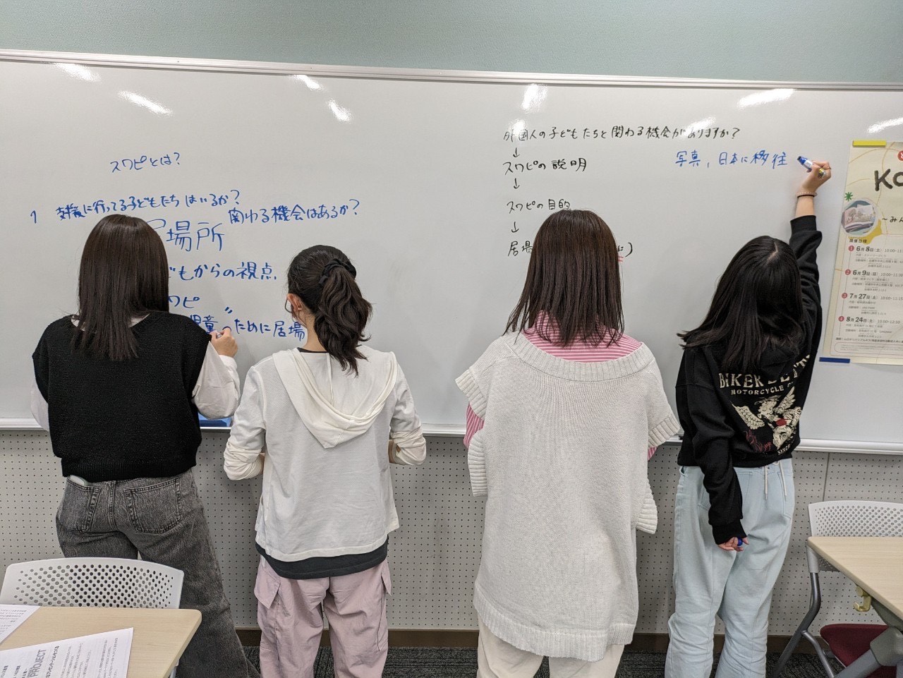前期は主に2つの講演会を行いました。1つ目は伊勢崎会場の代表の方による講演会です。実際にいる児童を想定した支援の方法や、支援団体の在り方について学ぶことができました。2つ目は、八桁先生による外国籍の児童に対する支援のあり方について講義していただきました。この講義ではロールプレイなども取り入れられていて、外国籍の子どもの気持ちを理解するとともに、どんな支援が必要なのか体験しながら学ぶことができました。