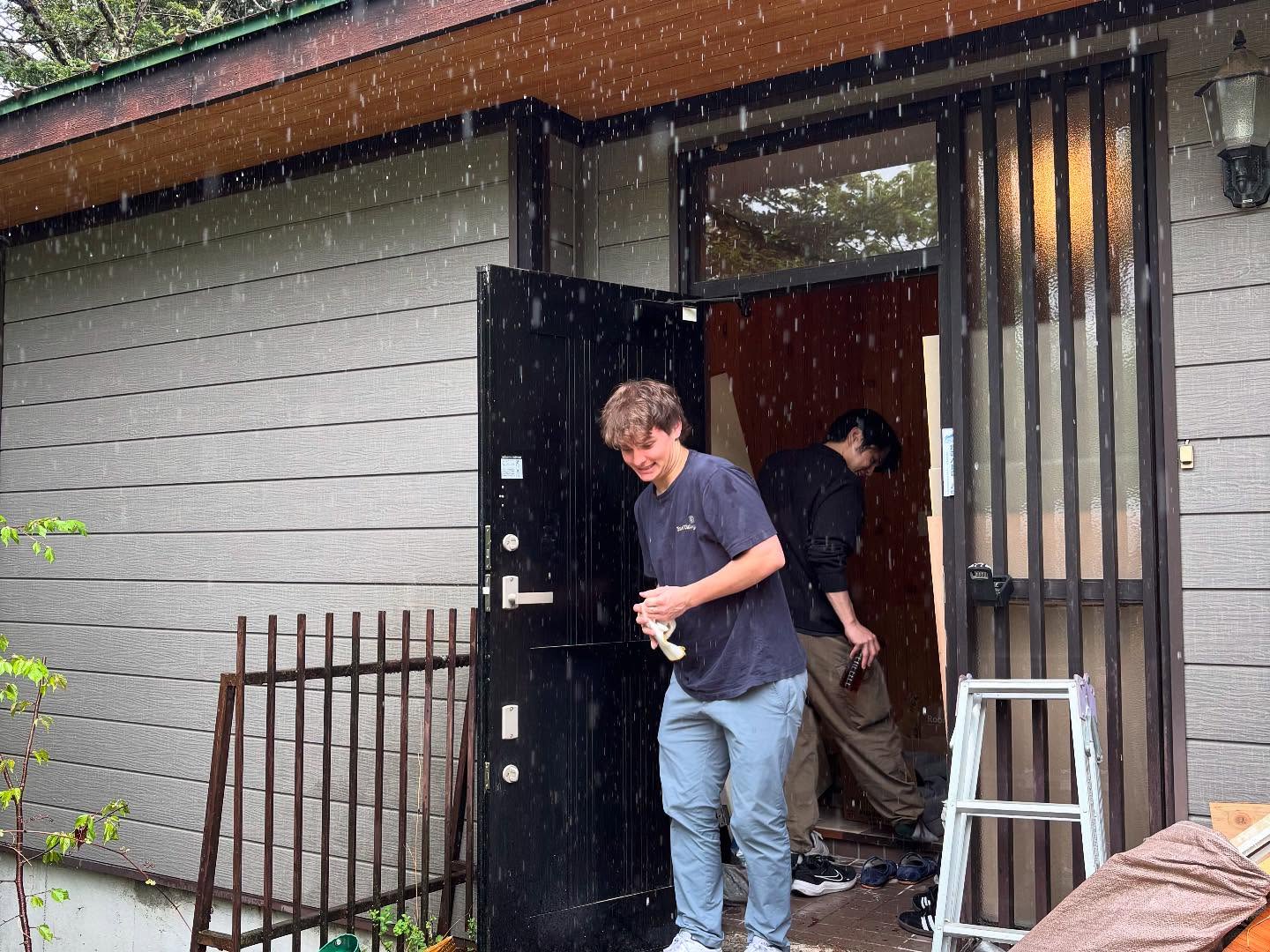 初日は、役場の担当者から「消滅可能性都市」に分類されている村の現状や、空き家改修に関する取り組みについての説明を受け、実際の改修前後の民家を見学しました。あいにくの天候により作業は限定的となりましたが、補助的な作業を通じて地域の現状と課題を実地に学ぶ機会となりました。