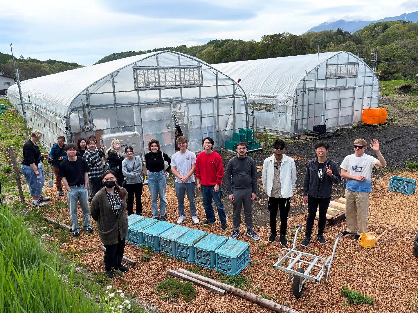 週末には、群馬滞在中のメインプログラムとして嬬恋村でのサービスラーニングを実施しました。本学の「地域活性化演習(過疎化地域探求)」を履修する学生も参加し、日米あわせて14名の学生が地域課題に取り組みました。