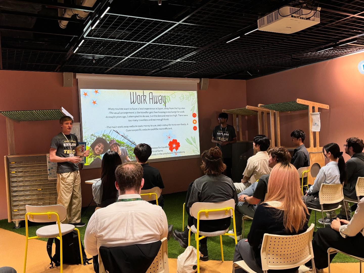 研修の最終日には、群馬県庁にて日米の学生による成果発表が行われました。3グループに分かれた発表では、宿泊施設の提供と引き換えに地域活動に参加してもらう仕組みの提案や、外国人の若者に向けたSNSでの情報発信の強化など、学生ならではの視点から具体的なアイデアが示されました。