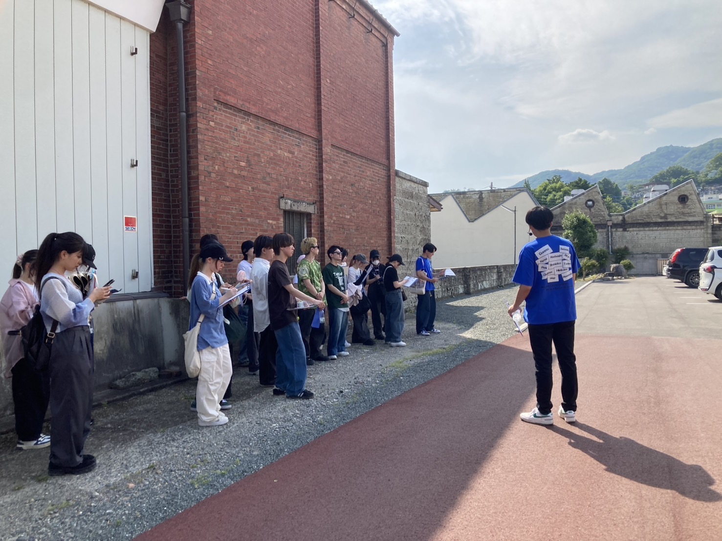 午後の街歩きでは、本授業を担当する児浦良裕准教授のゼミで桐生の地域研究に取り組む学生が案内を務めました。織物工房や工場をリノベーションした書店、象徴的なのこぎり屋根の建物などを巡り、桐生の地域資源の魅力を体感しました。いわゆる「映える」商店やスポットも多く、学生たちも盛んに写真を撮っていたようです。