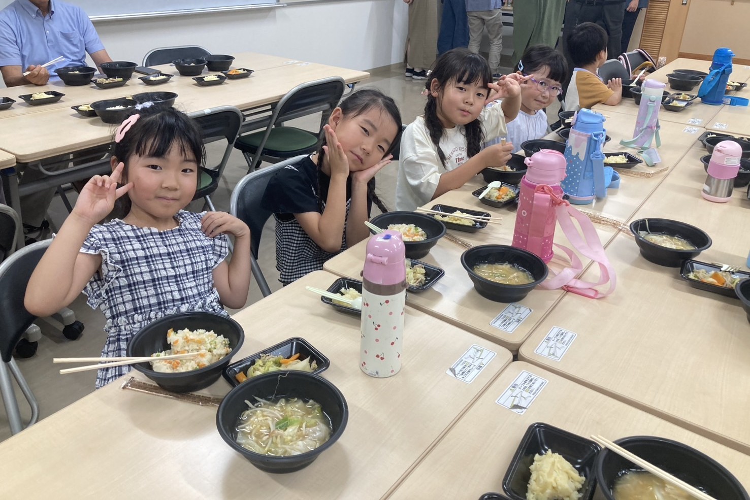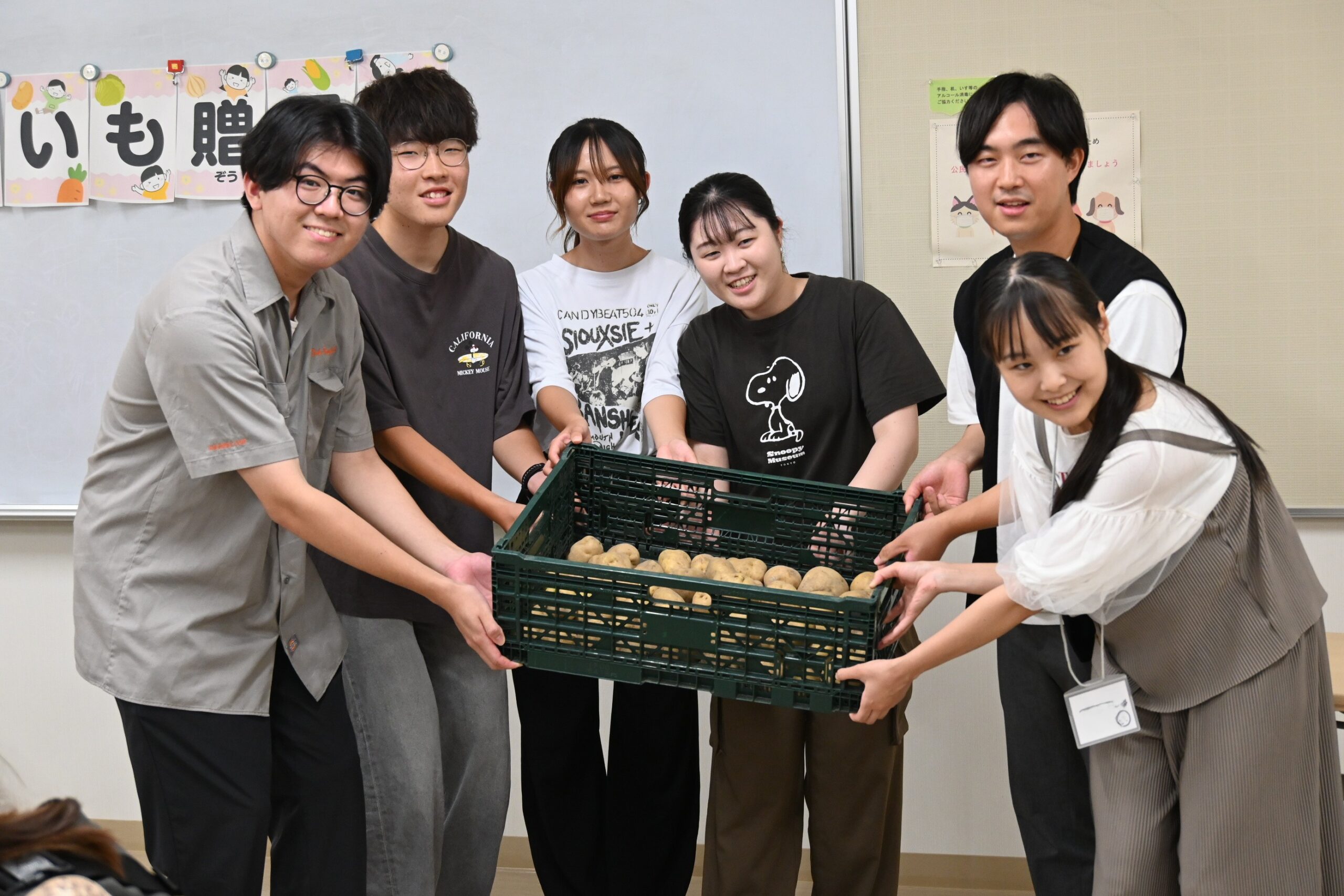 寄付したジャガイモはさっそく「マッシュポテト」に調理され、お子さんたちや保護者のみなさんに振舞われました。たくさんの人から「おいしい」と言葉をいただき、学生たちもうれしそうな笑顔を見せていました。