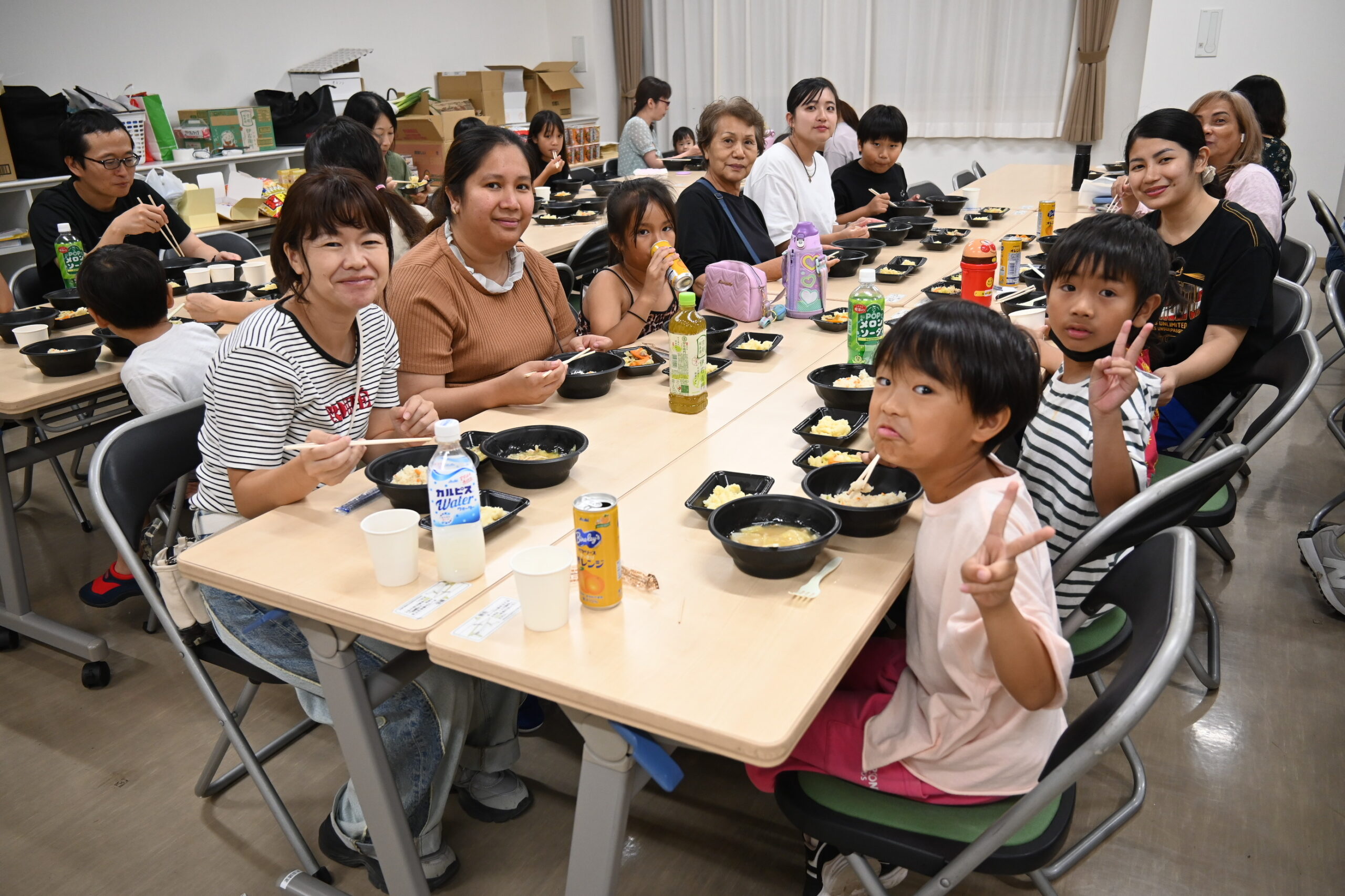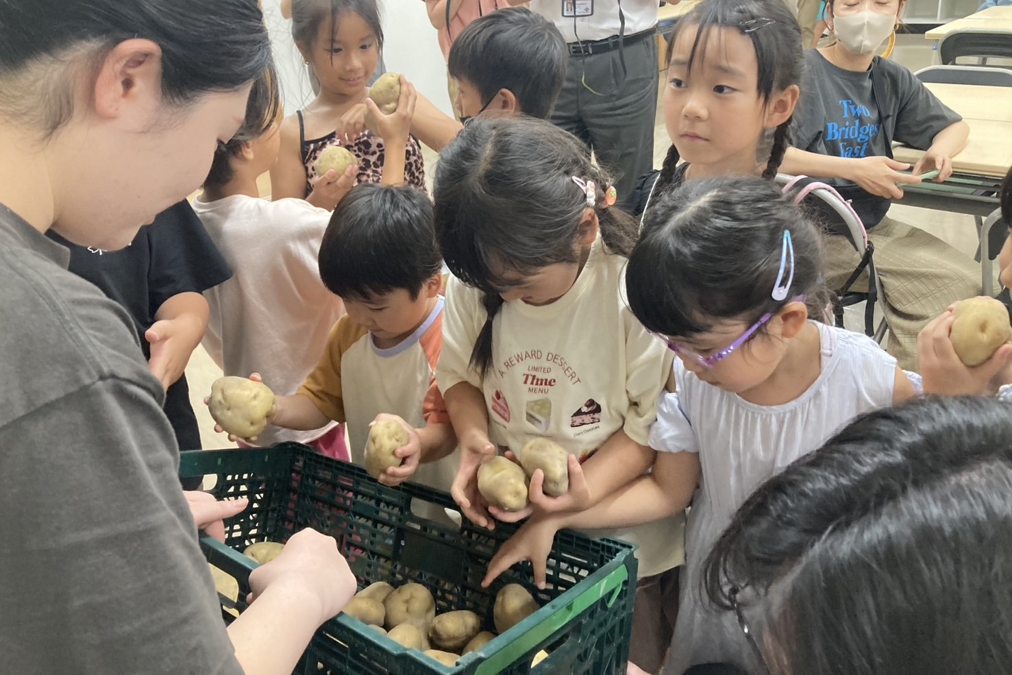 寄付は子ども食堂の同日に行われ、贈呈式ではたくさんのお子さんや保護者の方々の前で、ジャガイモをお渡しすることができました。式後にはお子さんたちとジャガイモを手に記念撮影したりと、和気あいあいとした雰囲気の中、交流を深めることができました。