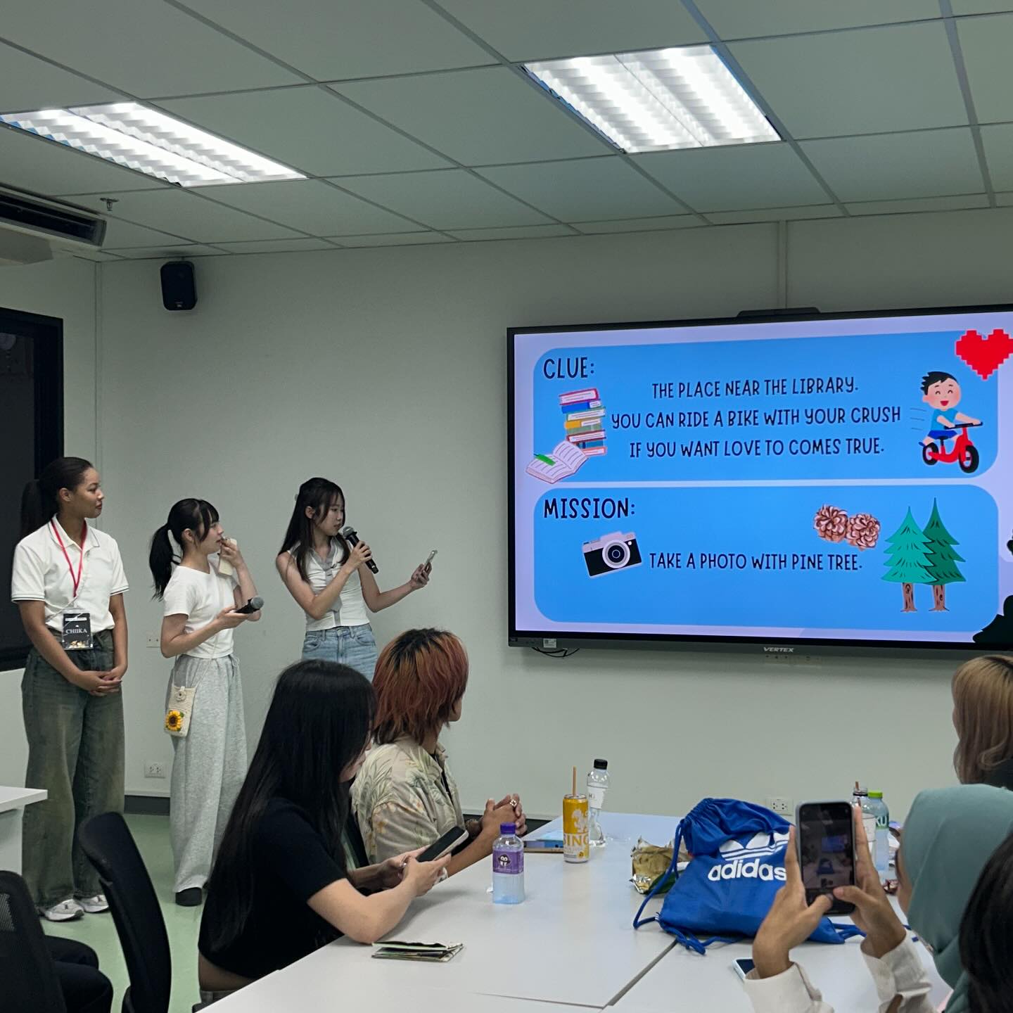 1週間が経過すると、学生たちはタイでの生活に徐々に慣れ、研修のメインプログラムである国立カセサート大学での活動が始まりました。研修後半では、教育学部で多彩なプログラムに参加しました。本学学生による日本文化紹介ワークショップでは、アニメやファッションなど身近なテーマを英語で発表し、タイの学生たちから大きな反響を得ました。
