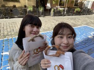 旧市街を歩いていると、大きなプレッツェルを売っているお店を見つけました。日本ではあまり見かけないサイズに、とても驚きました。