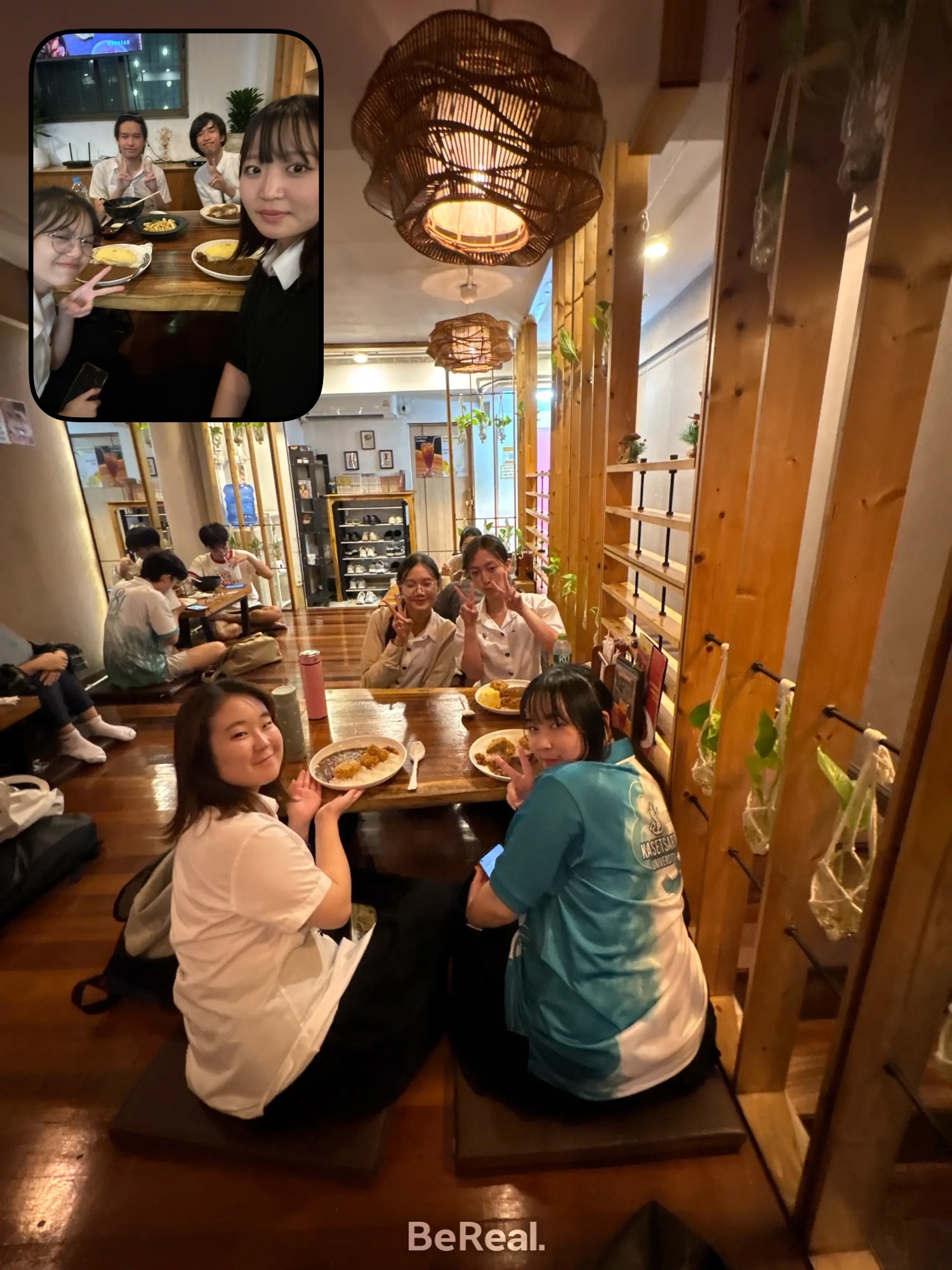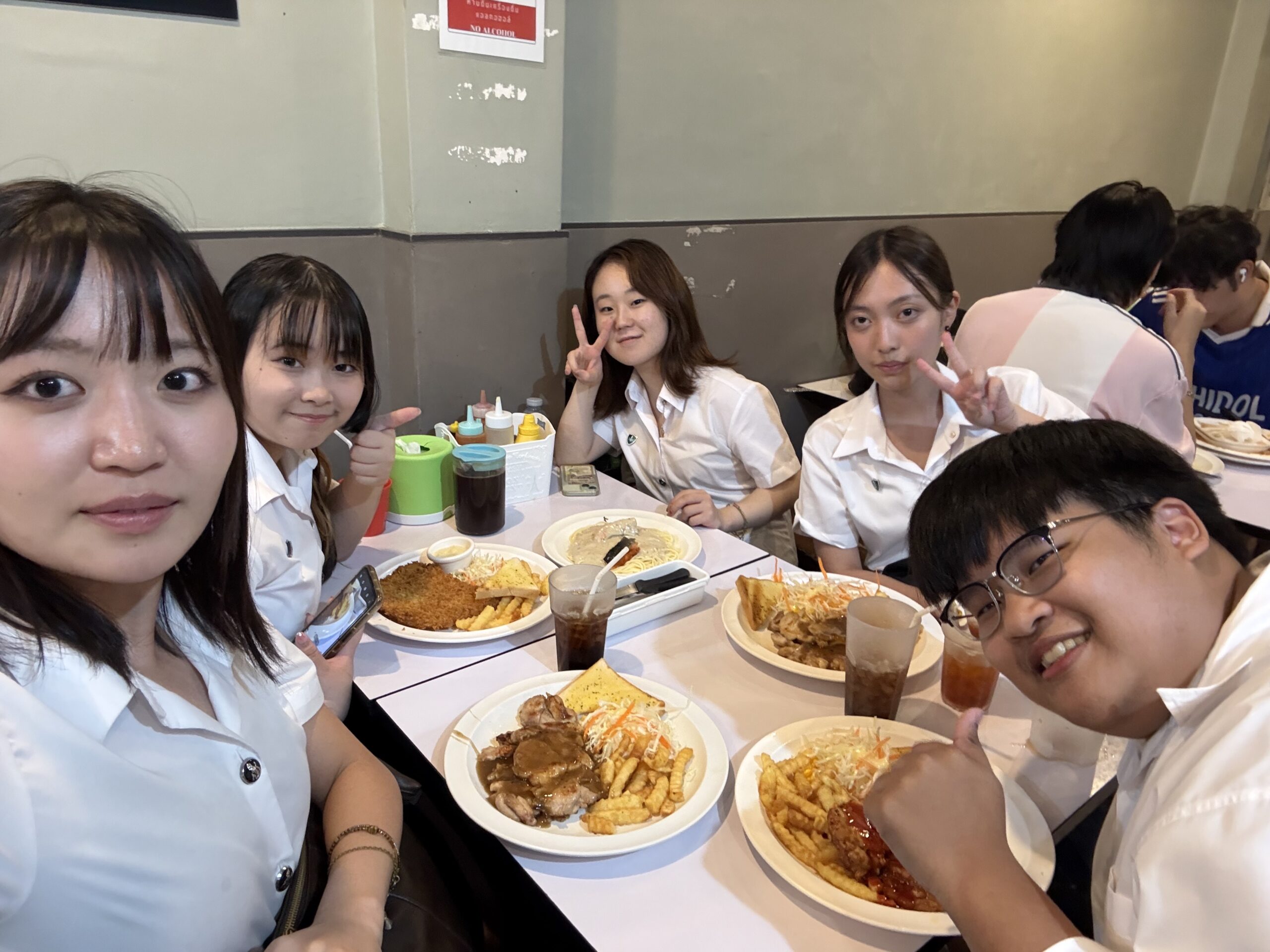 夕方に授業がある日は、日本人や台湾人の友人と一緒にショッピングモール内のレストランで食事をしたり、屋台で夕食を買ったりしています。先日は日本人の友人としゃぶしゃぶを食べ、日本食の懐かしさを実感しました。ただし、タイでは日本食の価格が日本の倍以上するため、気軽に食べることは難しいのが現状です。