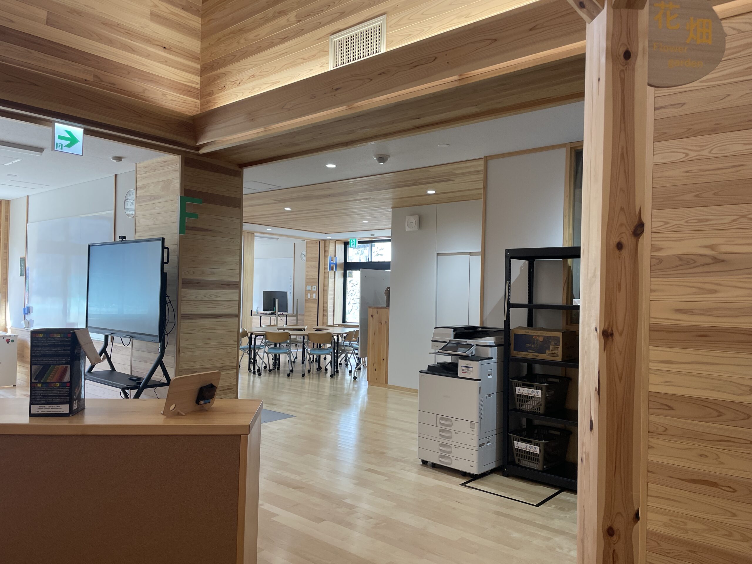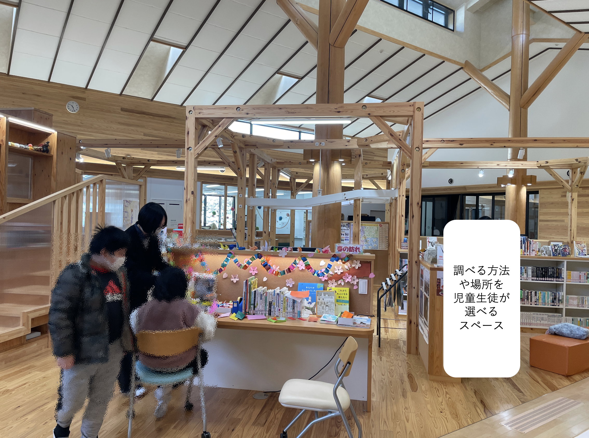 ・ほかの小中学校では見たことのない学校施設と地域に根付いた地域に防災やコミュニティの拠点となる校舎づくり、特定の教室を持たない空間など、目にするものすべてが私の想像していた学校とは異なっていてとてもおもしろいと感じました。その中でも、バリアフリーを意識した段差のない教室やスペースはこれからの学びの場としてあるべき姿だと感じました。誰もが学びやすい環境により児童生徒も楽しく学ぶことができているのだと思いました。また、特定の教室を持たないため学校内すべてが学びの場であるのだと知りました。
